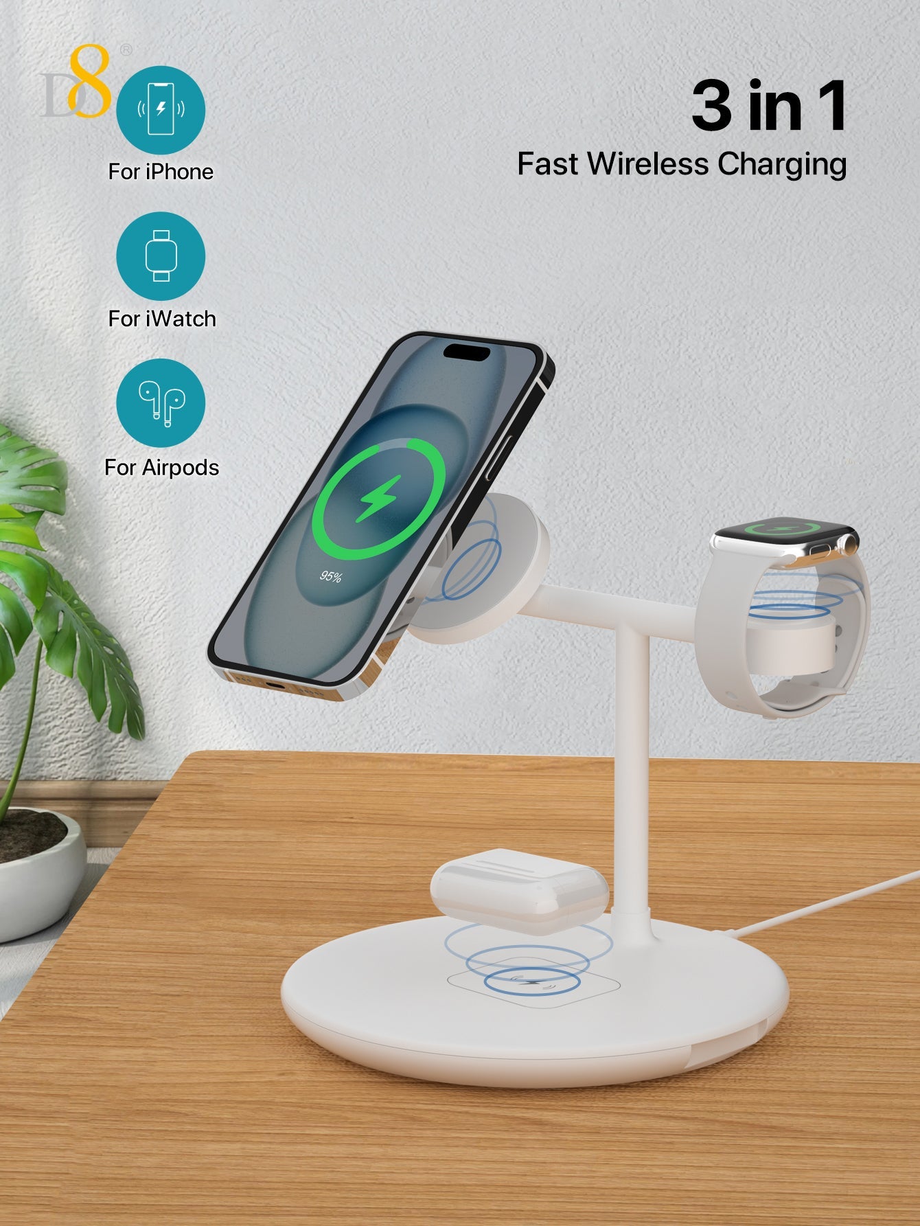 Introduction Welcome to Dynamic8, a leading mobile accessory technology company based in Shenzhen, China. We specialize in high-quality mobile accessories, with our latest innovation being the 3-in-1 Magnetic Wireless Charging Station. This device is designed to provide a seamless and efficient charging experience for Apple products, including iPhones, AirPods, and iWatch.