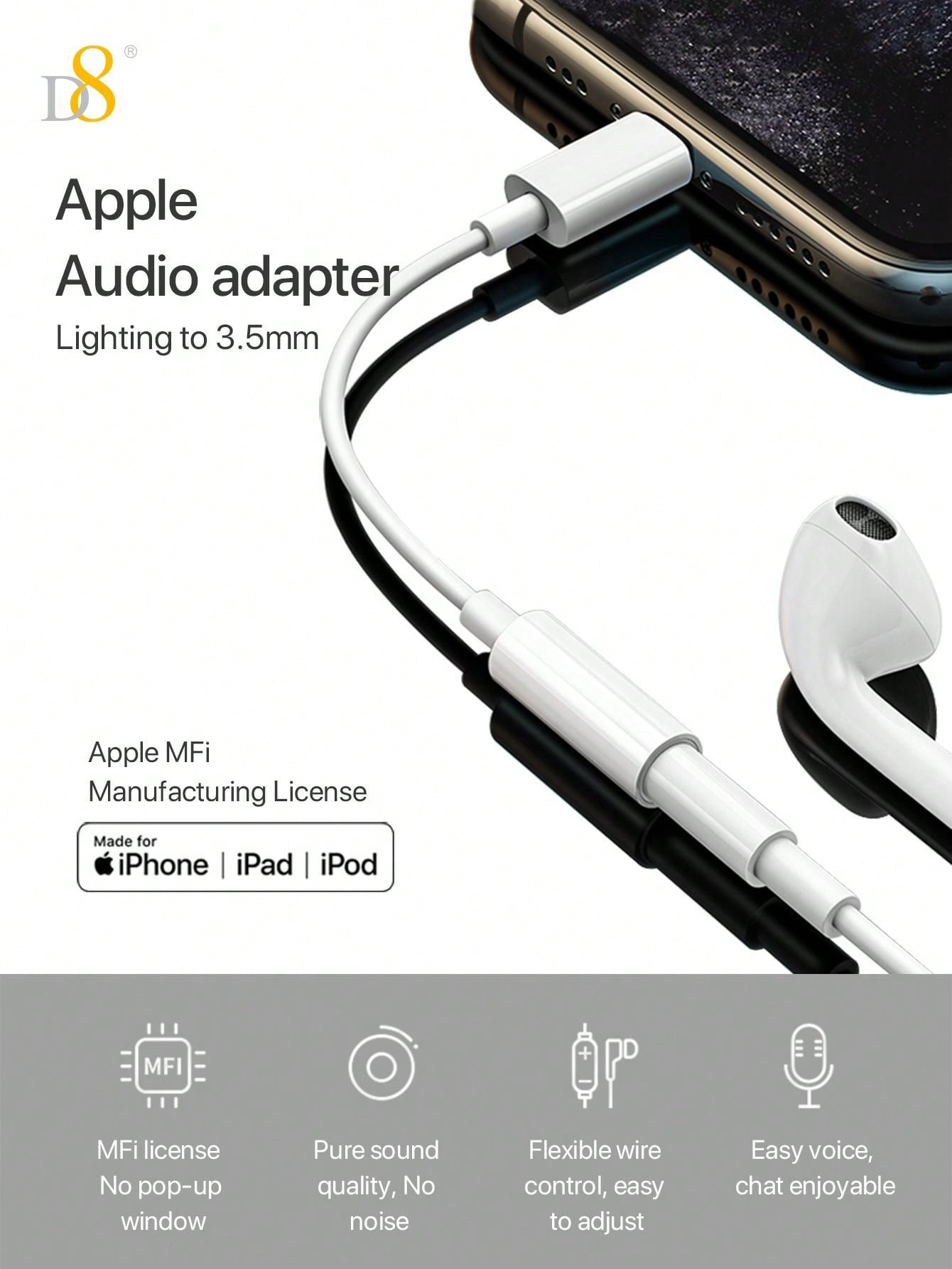 The D8 3.5mm Audio Charger Cable Adapter offers a seamless solution for iPhone users who need both audio and charging capabilities simultaneously. Designed for the latest iPhone 15, 14, 13, and 12 Series, this adapter allows you to listen to music, take calls, or watch videos while keeping your device charged. It's the perfect companion for those who want to enjoy uninterrupted entertainment without compromising battery life.