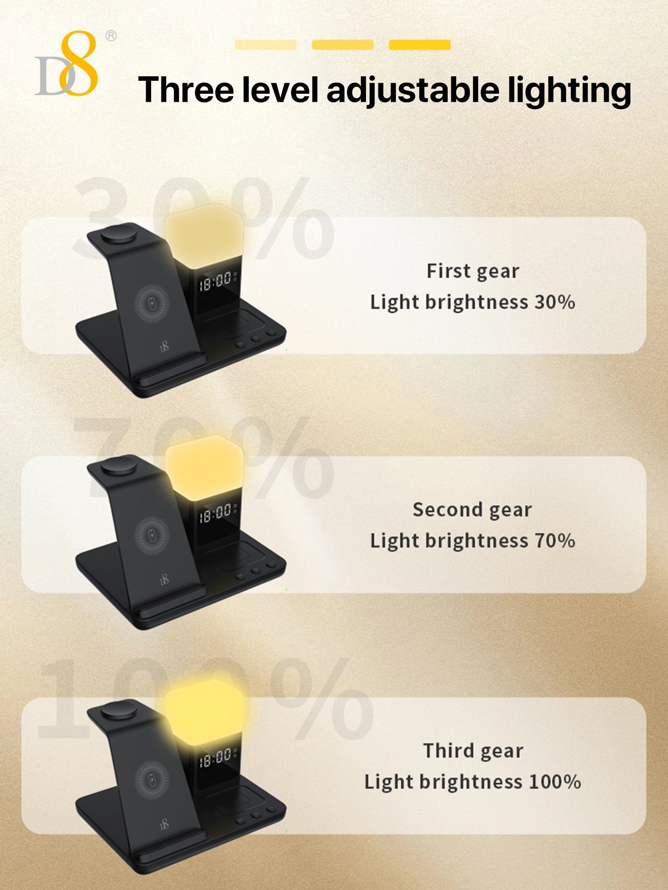 D8 3-in-1 Wireless Charger with LED Night Light for iPhone/Apple Watch