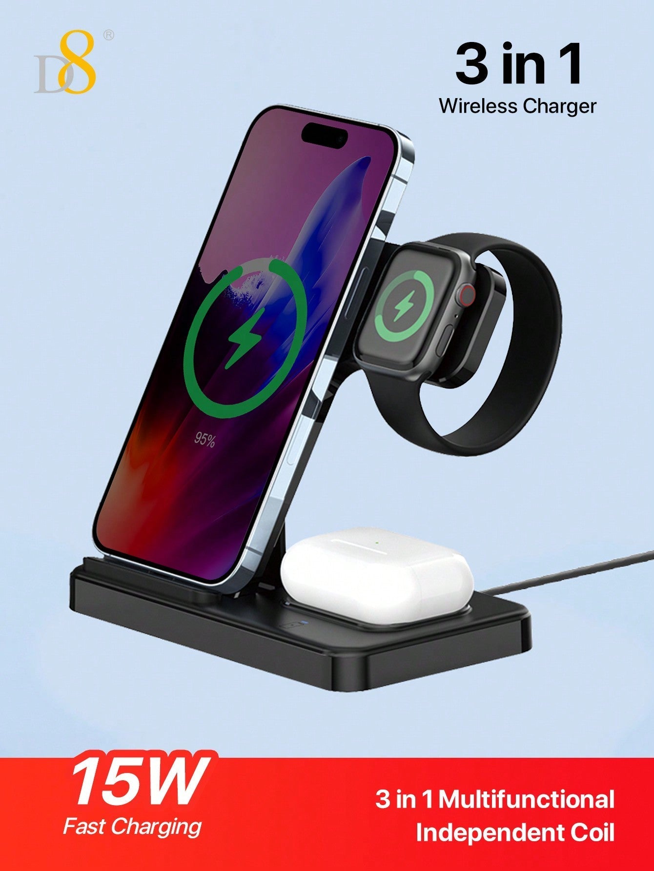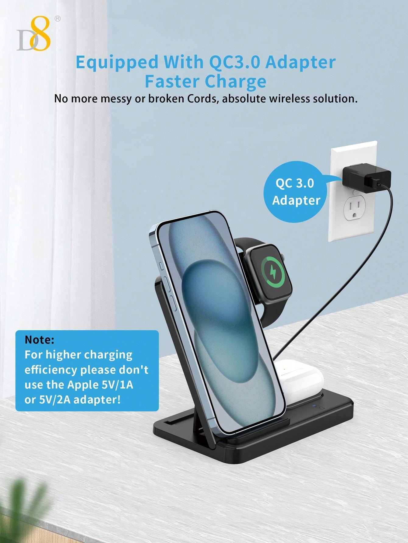D8 3-in-1 Wireless Charger, for iPhone/Watch/AirPods, Ideal Gift Station