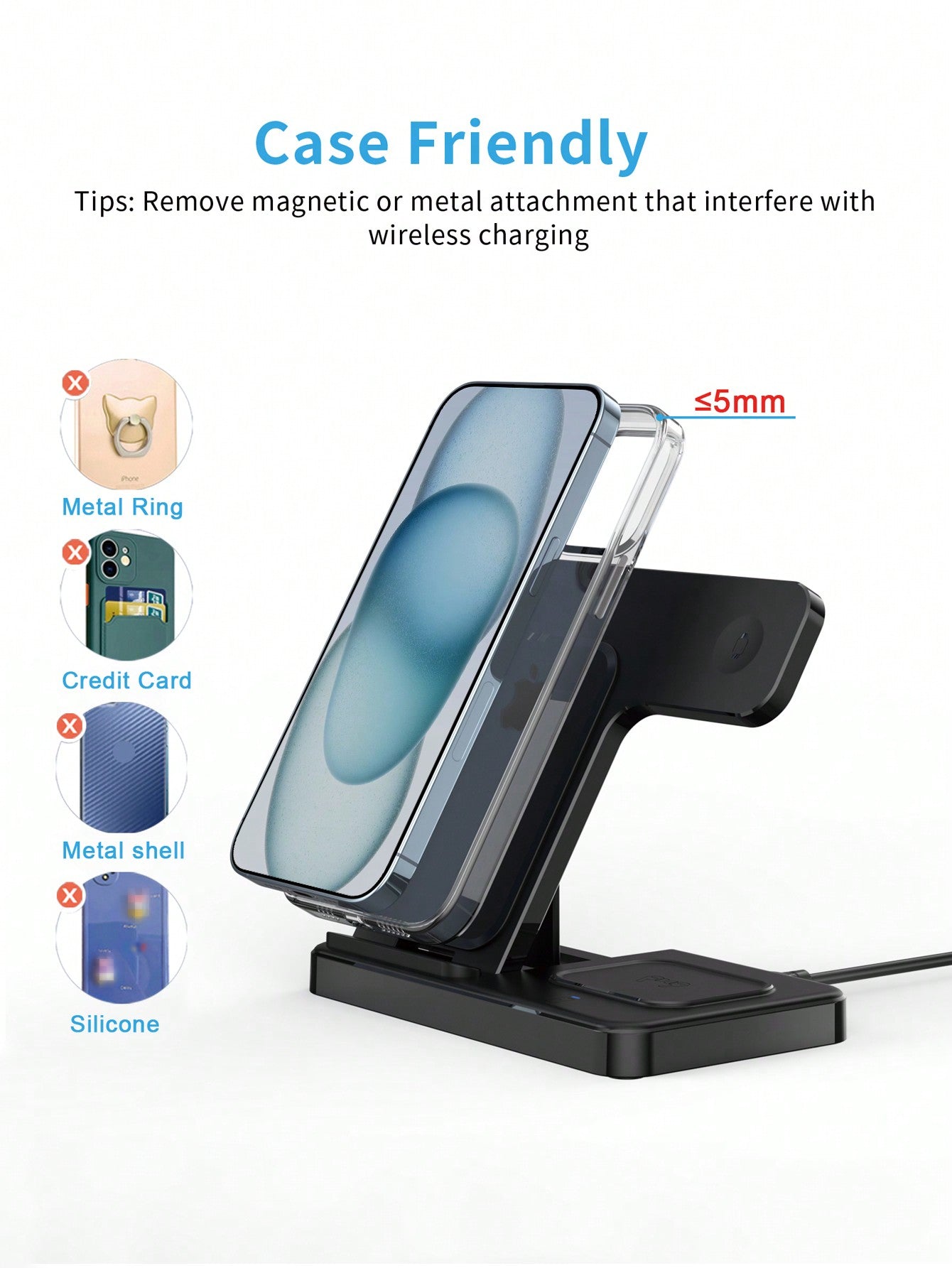 - 3-in-1 Charging Dock: Charge iPhone, Apple Watch, and AirPods all at the same time on one sleek, space-saving stand.