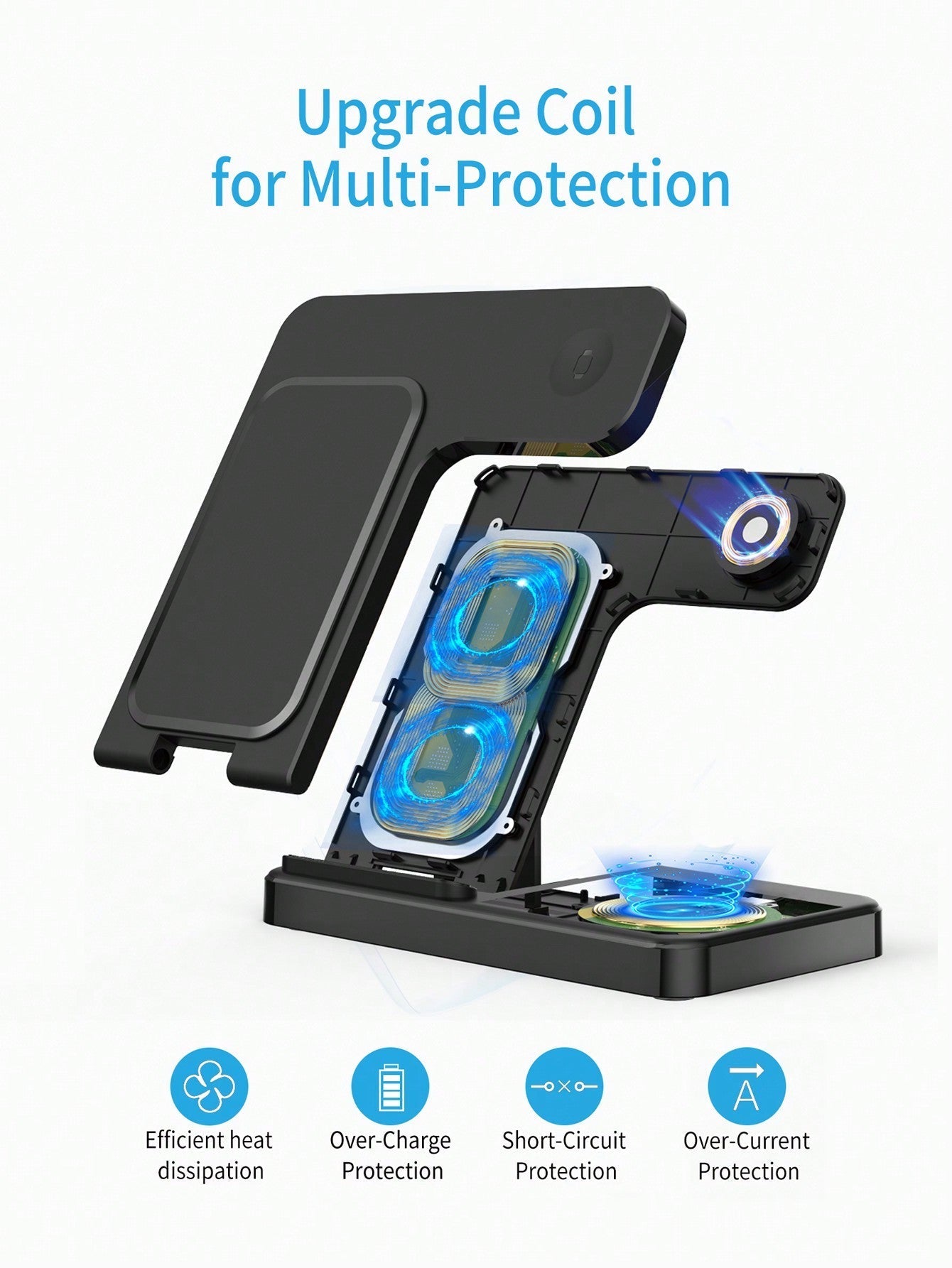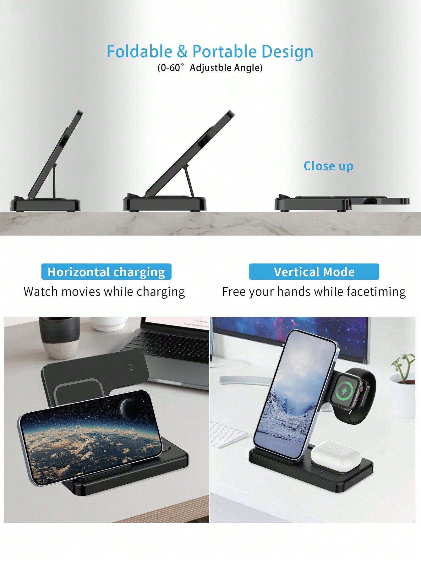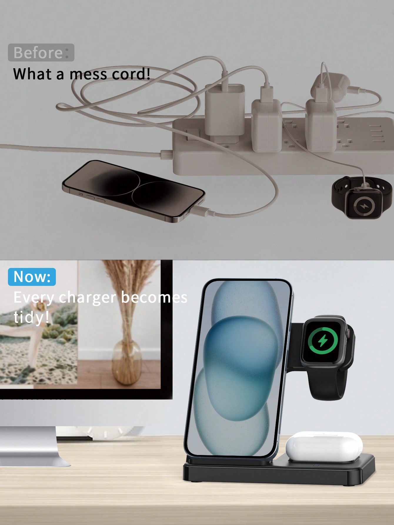 - All-in-One Convenience: No more tangled cords or clutter. This 3-in-1 charging station allows you to charge three of your most used devices in one convenient spot, making it perfect for your desk, nightstand, or kitchen counter.