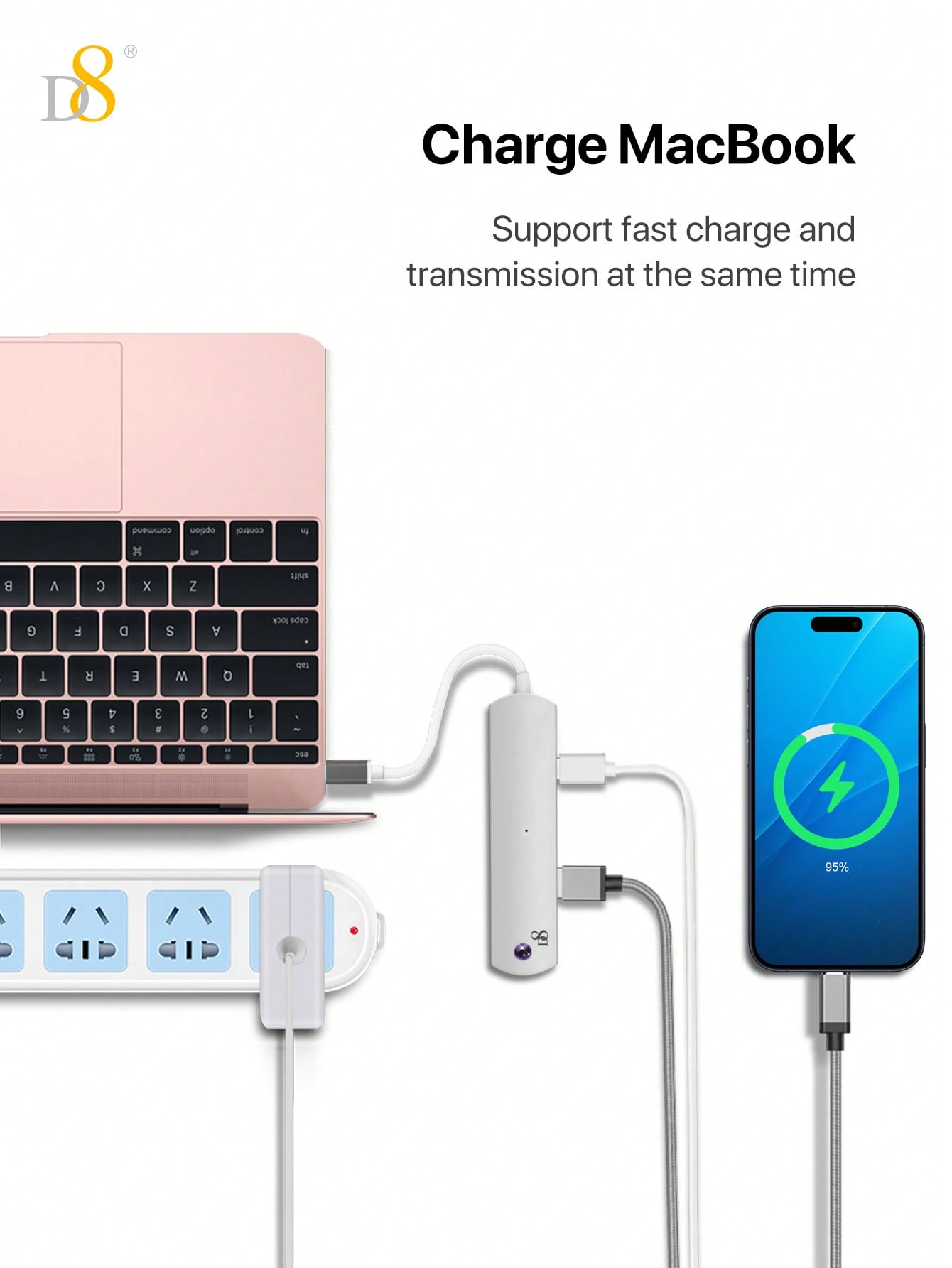 The D8 4-in-1 USB-C Hub is more than just an adapter—it’s your portable productivity partner. Whether you're a digital nomad, professional editor, or everyday user, this sleek hub ensures fast data transfer, seamless multitasking, and universal compatibility—all in one compact accessory. Expand your possibilities with D8.