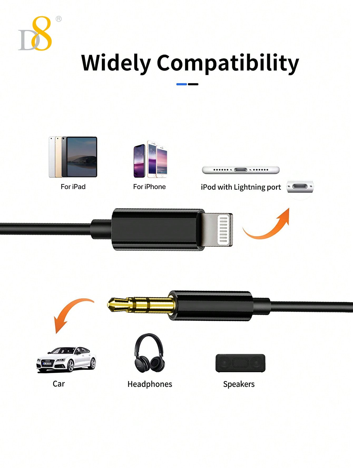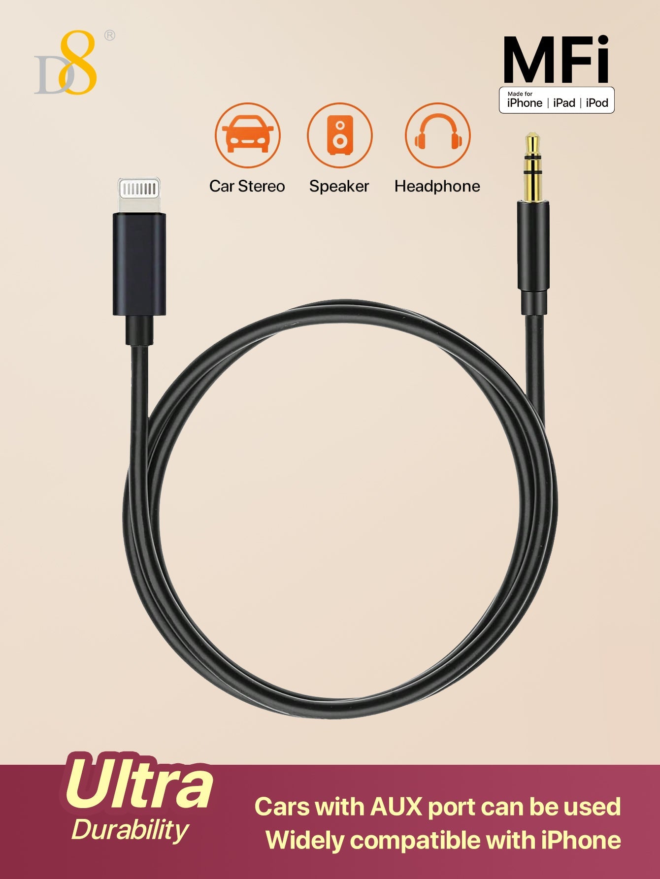 D8 iPhone AUX Cord, Lightning to 1/8" Stereo Cable, 3.3FT for iPhone Models