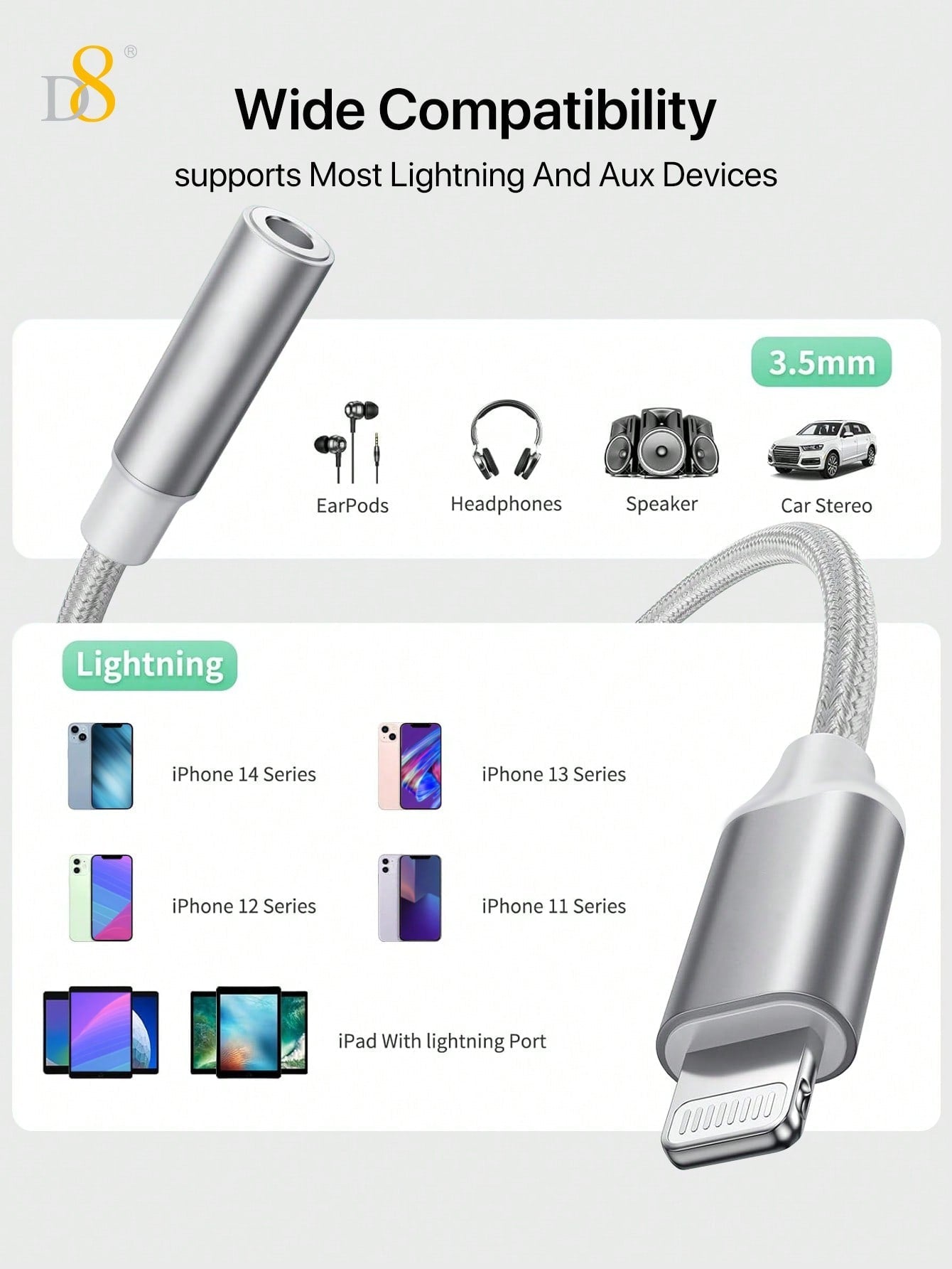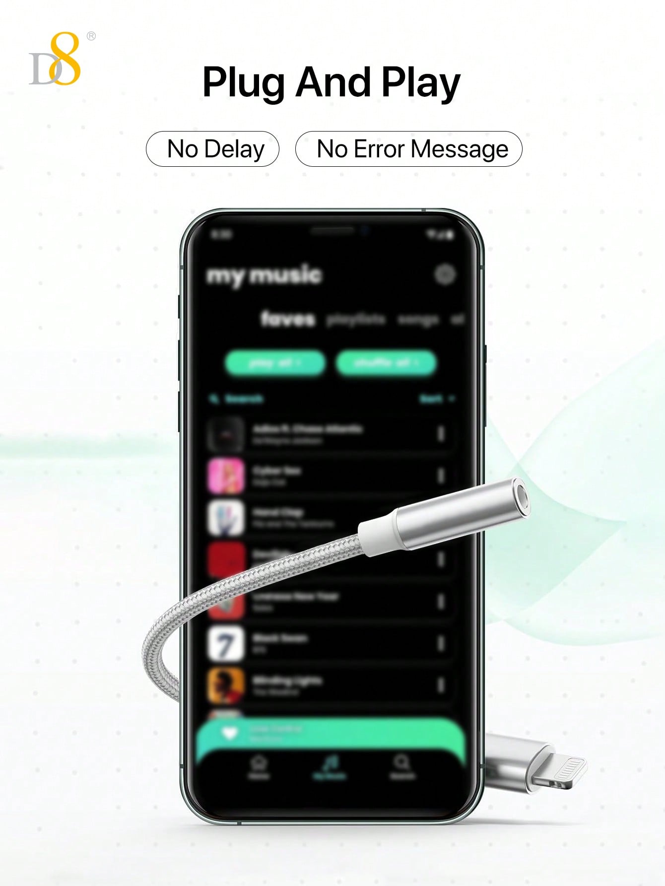 D8 MFi Certified Lightning to 3.5mm Headphone Adapter, iPhone Aux Dongle