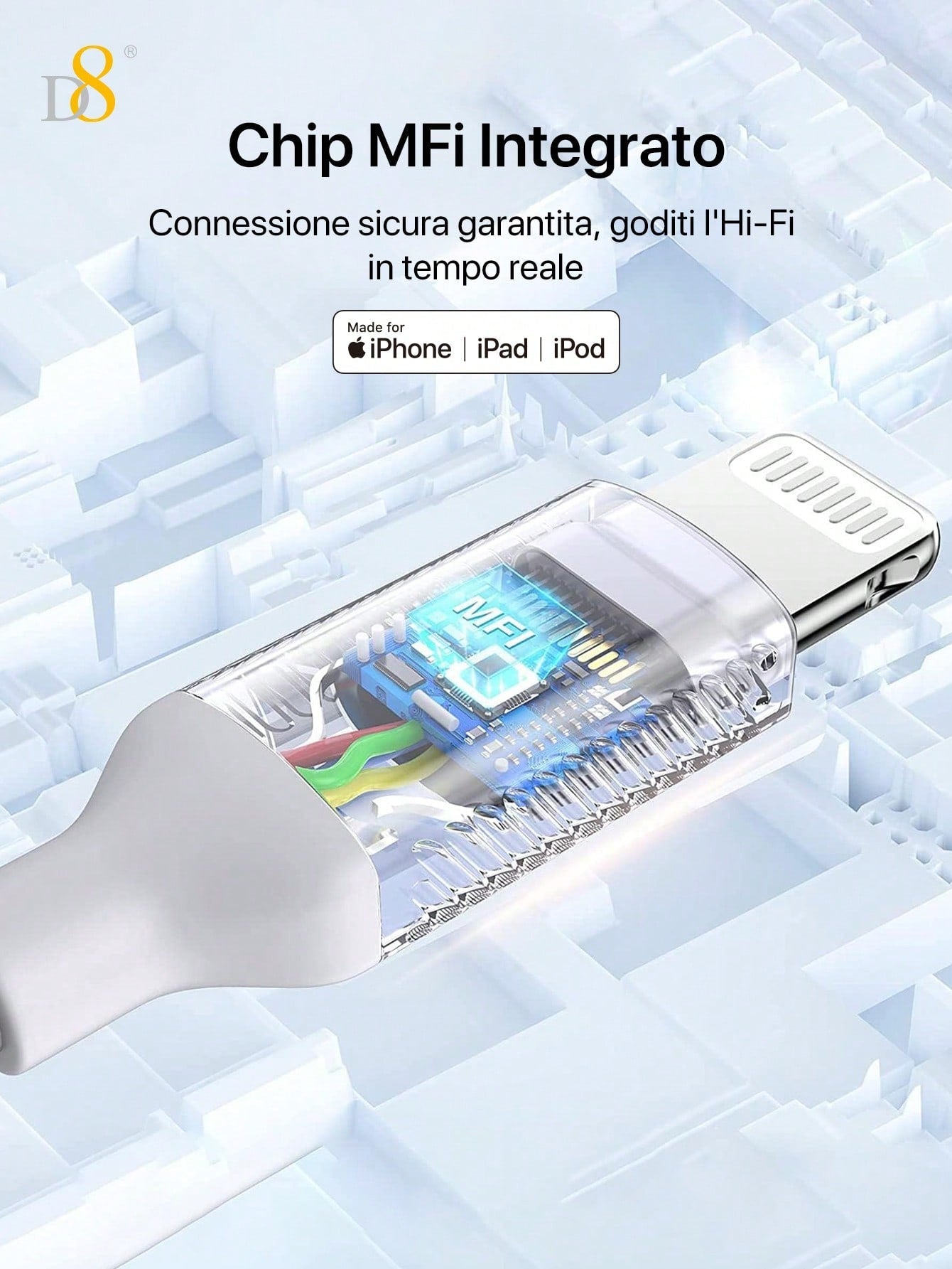 The D8 iPhone Headphone Adapter is an Apple MFi Certified lightning-to-3.5mm adapter designed for those who want to enjoy high-quality audio from their favorite wired headphones or earphones. Whether you're listening to music, taking calls, or watching videos, this compact adapter ensures seamless connectivity between your iPhone 14, iPhone 13, iPhone 12, and other Apple devices with a lightning port. Say goodbye to compatibility issues and keep your favorite headphones working with your iPhone and iPad.