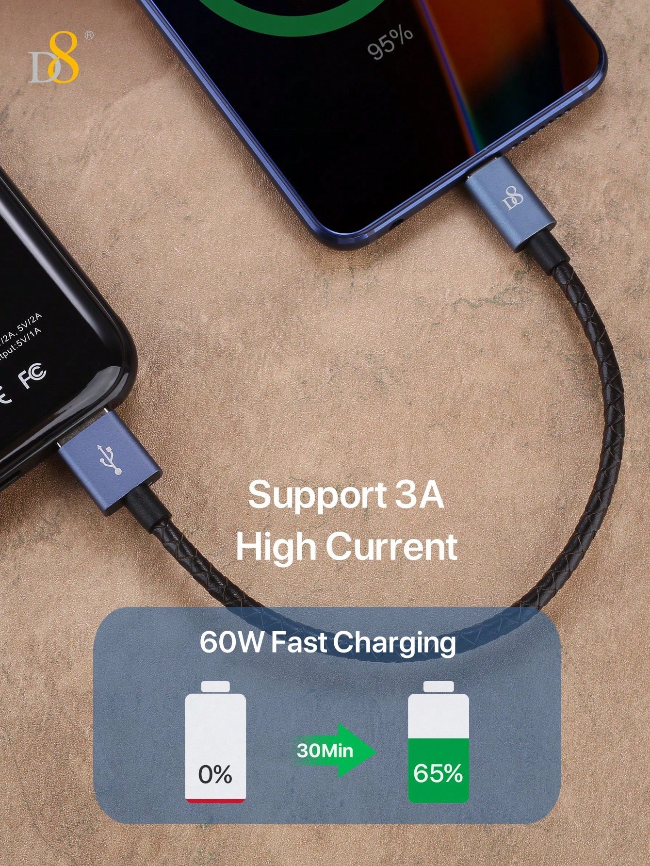 D8 Genuine Leather Short Type-C Charging Cable, (60W /0.2m )USB A To USB C Cable Compatible With I Phone16 / I Phone16 Pro / I Phone 16 Pro Max /15, Galaxy A10e A20 A50 A51 A71, S20 S10 S9 S8 Plus,Note 9 8,A11 A20 A51, G6 G7 V30 V35