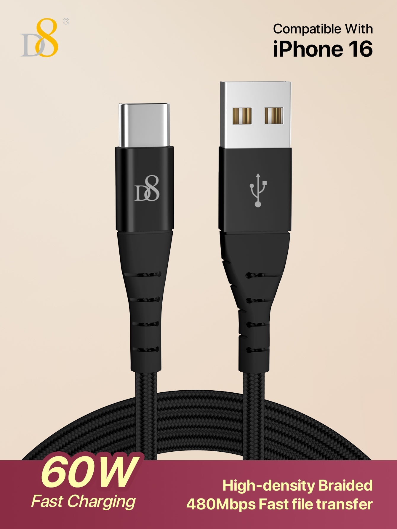 Nylon Braided Type-C to USB Cable | Dynamic8