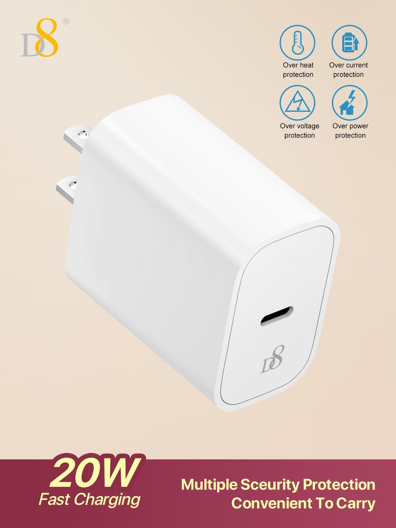 D8 PD 20W fast charging Type-C single port wall charger USA standard plug