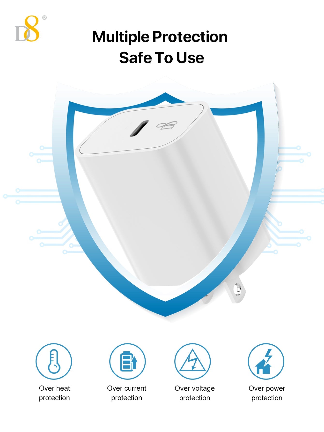 Power up your devices at lightning speed with the D8 20W USB-C Fast Wall Charger! Designed for the modern tech-savvy user, this compact charger delivers rapid, reliable power to smartphones, tablets, and more. With its USA-standard plug and cutting-edge Power Delivery (PD) technology, it’s the perfect travel companion or everyday charging solution for busy lifestyles.