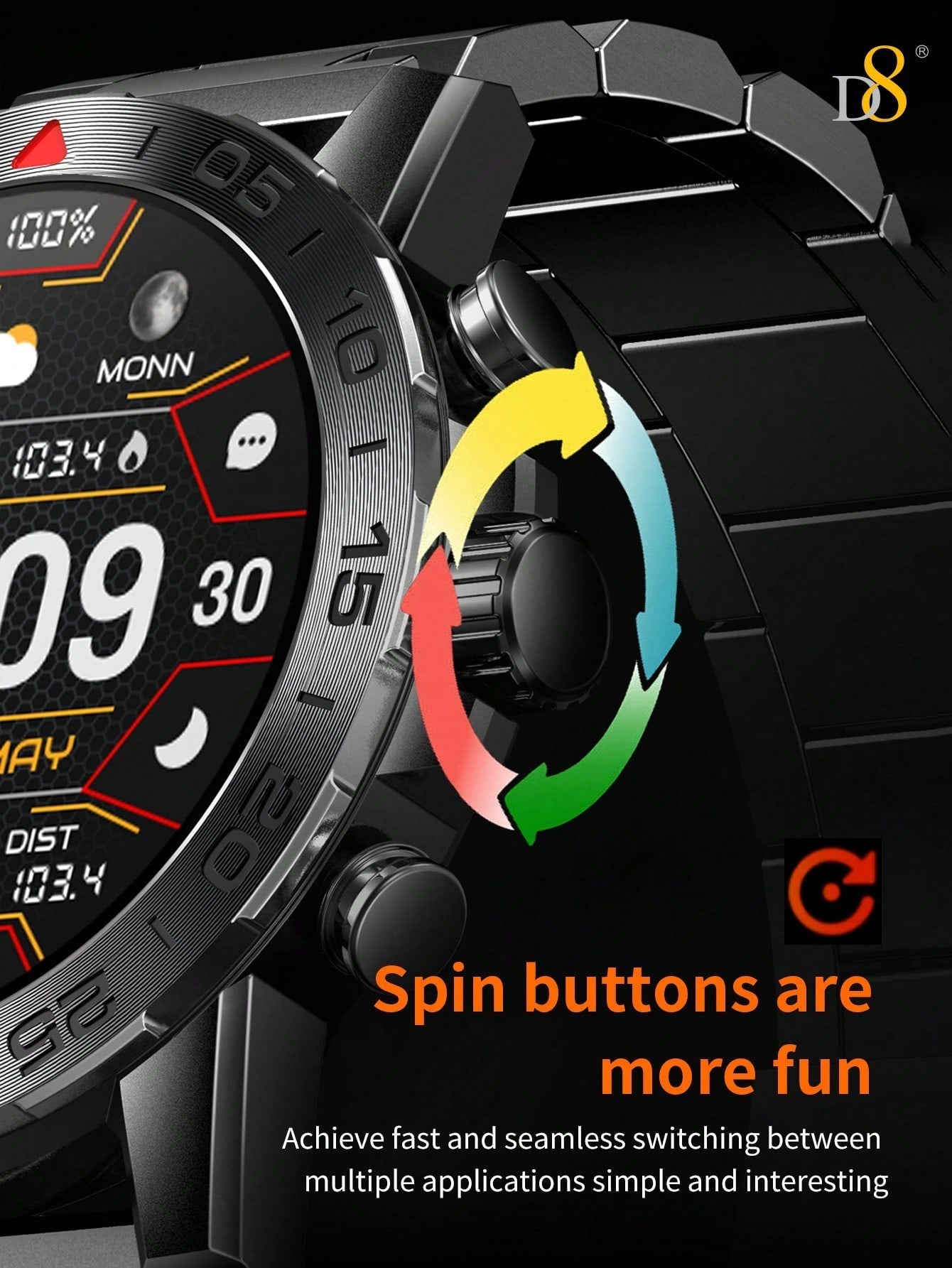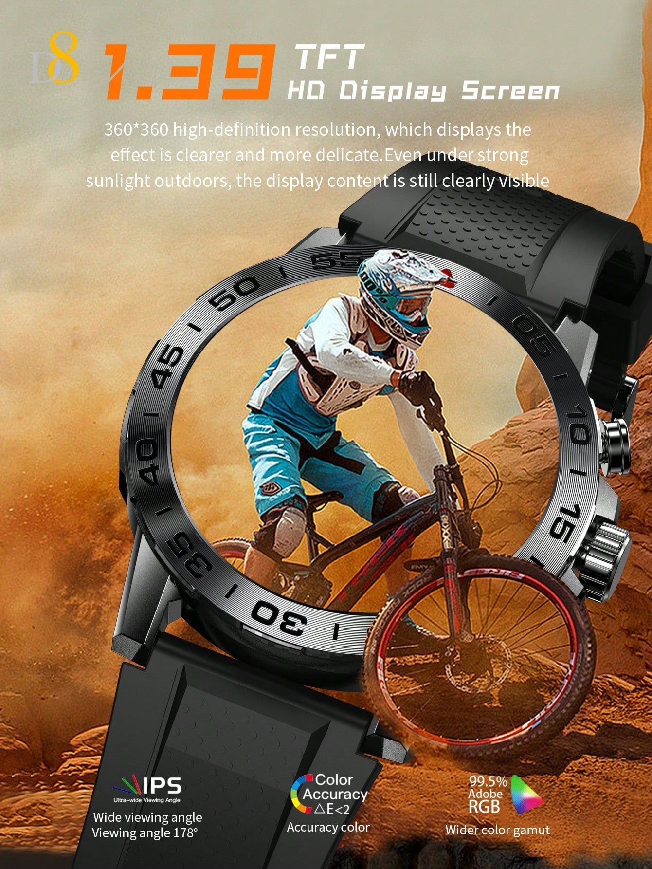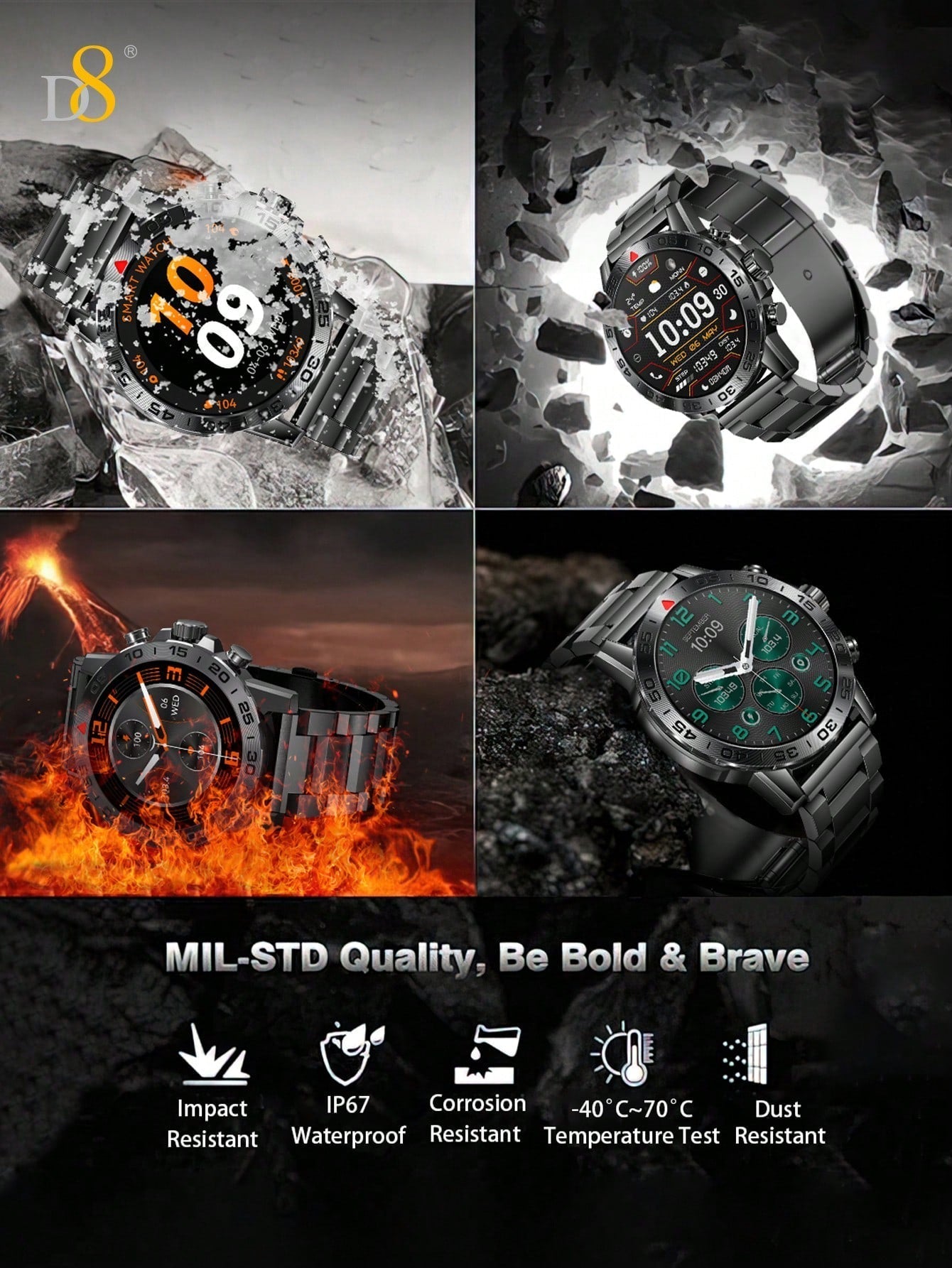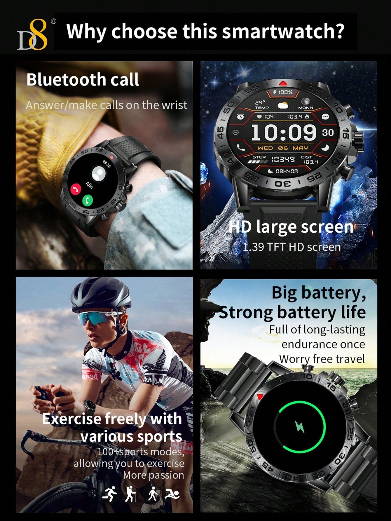 D8 Men's Rugged Smartwatch, 1.39" HD, IP67 Waterproof, 100 Sports Modes