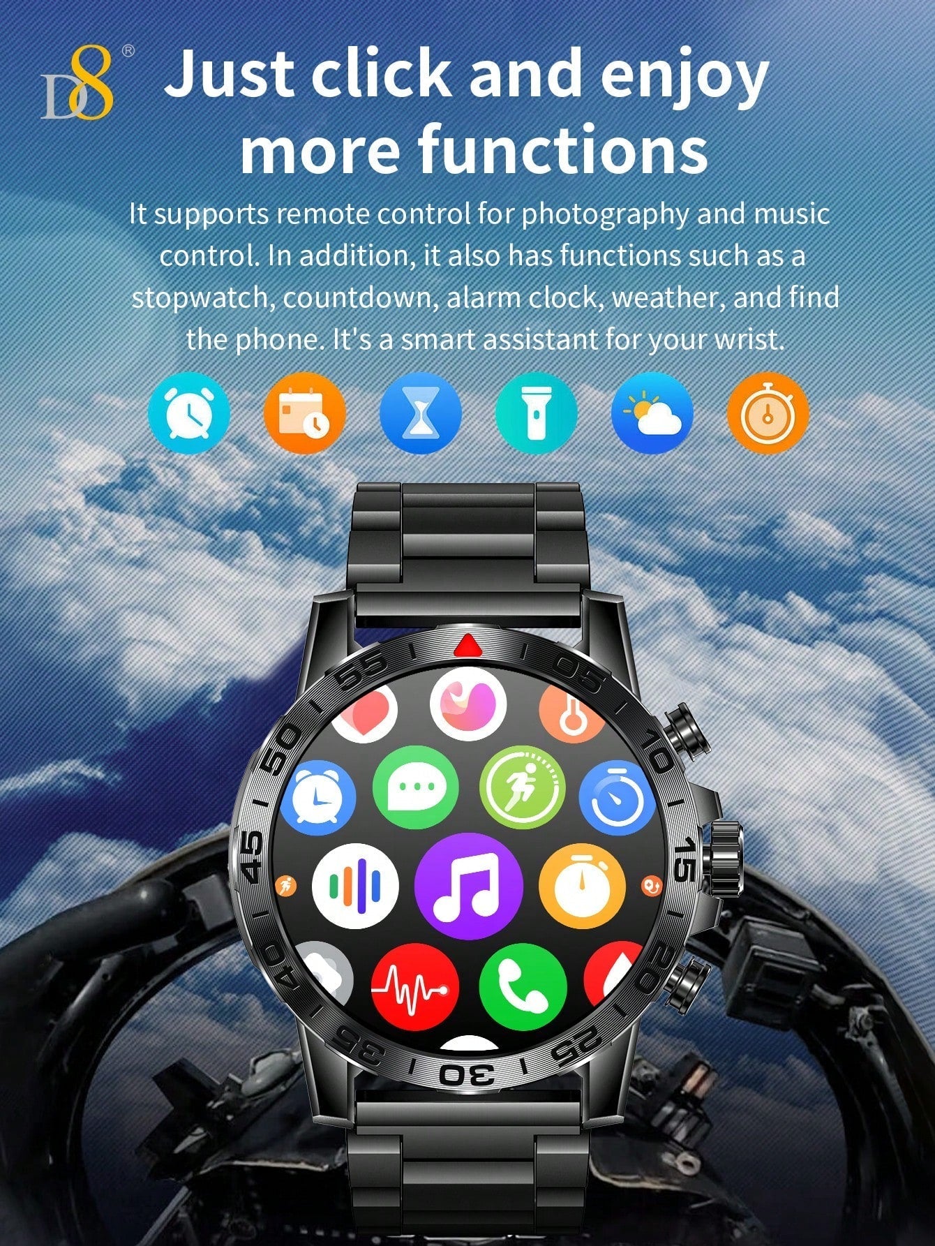 The D8 Smart Watch for Men is a robust, feature-packed smartwatch that combines rugged durability with powerful fitness and health monitoring features. Its 1.39" HD display, IP67 waterproof rating, and 100+ sports modes make it the perfect companion for outdoor activities, fitness tracking, and staying connected on the go. With additional features like sleep monitoring, heart rate tracking, and seamless compatibility with iPhone and Android, the D8 smartwatch is the ideal choice for men who want a dependable, stylish smartwatch to help them perform at their best.