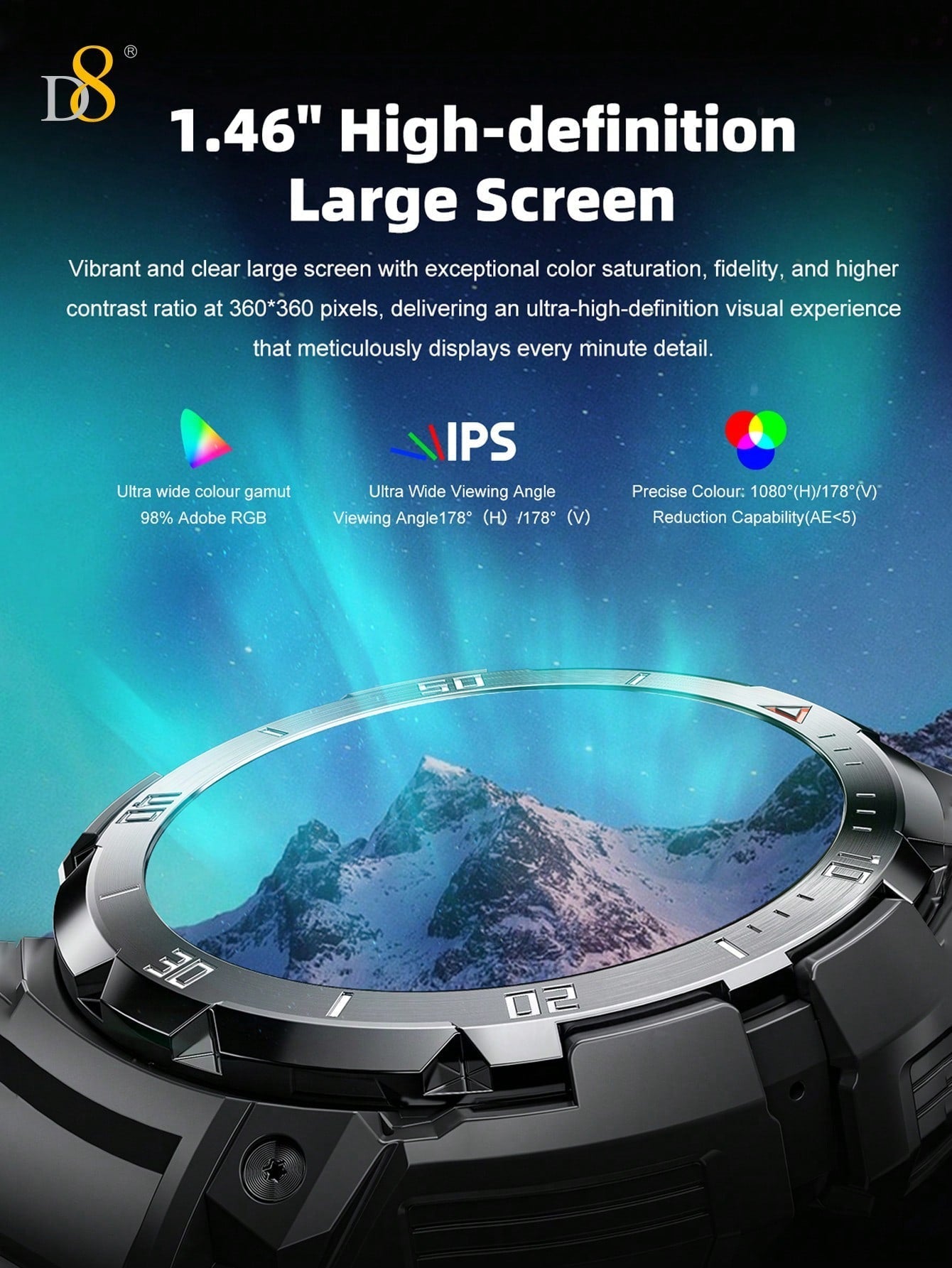 The D8 Smart Watch with Earbuds is a versatile, all-in-one device designed for those who prioritize fitness, communication, and entertainment. With its 1.46" HD touch screen, 9D sound effects, and over 110 fitness and sleep tracking modes, it empowers you to achieve your health goals while staying connected. Whether you're running, swimming, or simply relaxing, this smartwatch provides you with the tools you need for a balanced, connected lifestyle. Waterproof and compatible with both iOS and Android, the D8 Smart Watch is the ultimate accessory for the modern, active individual.