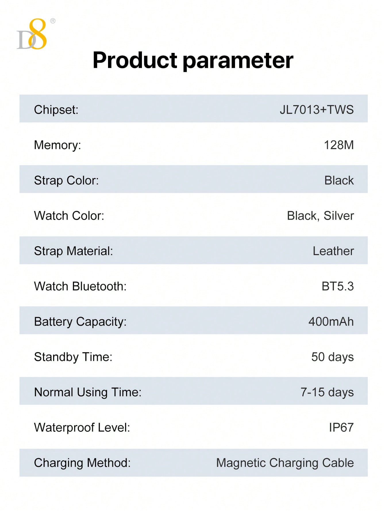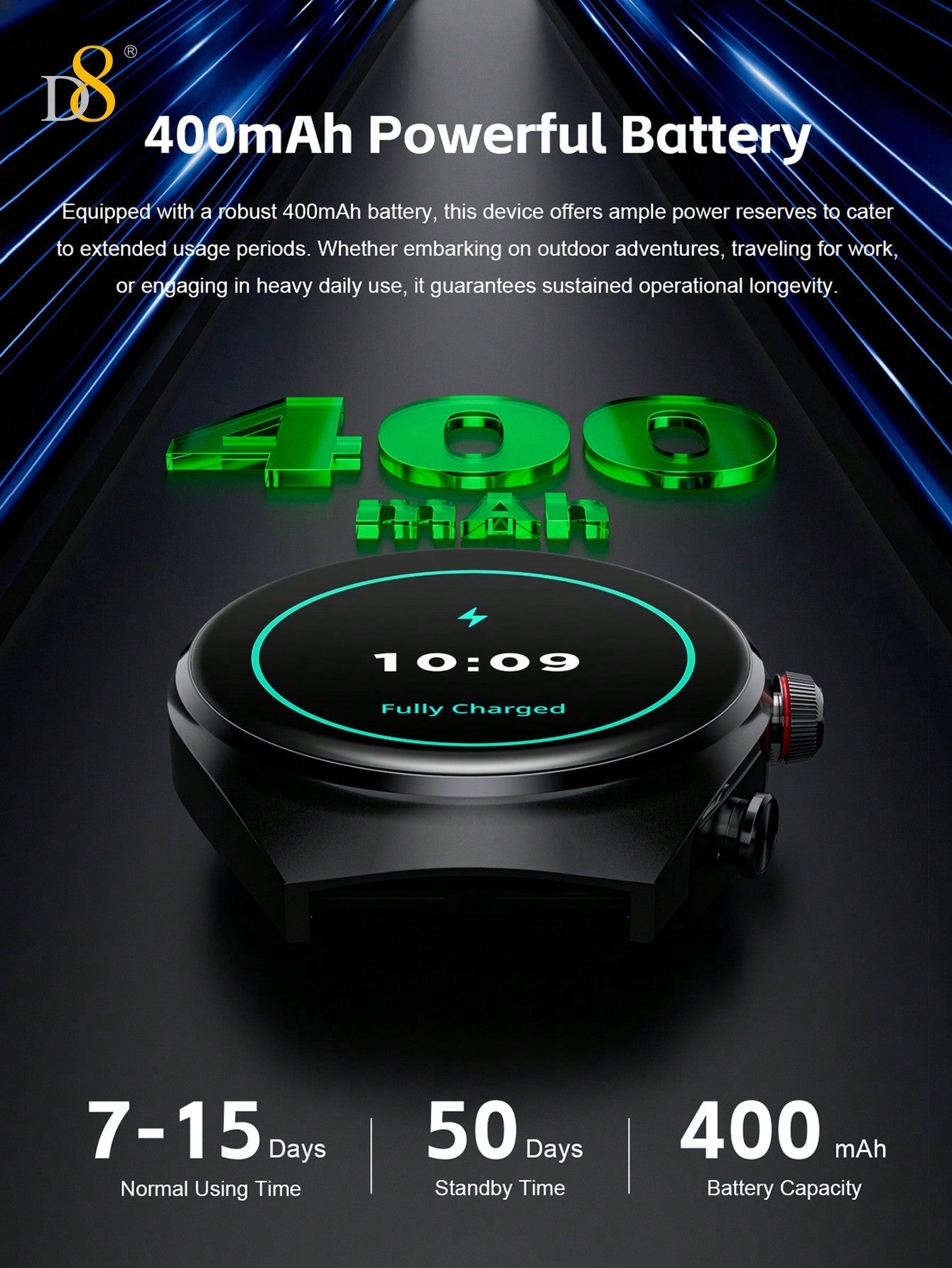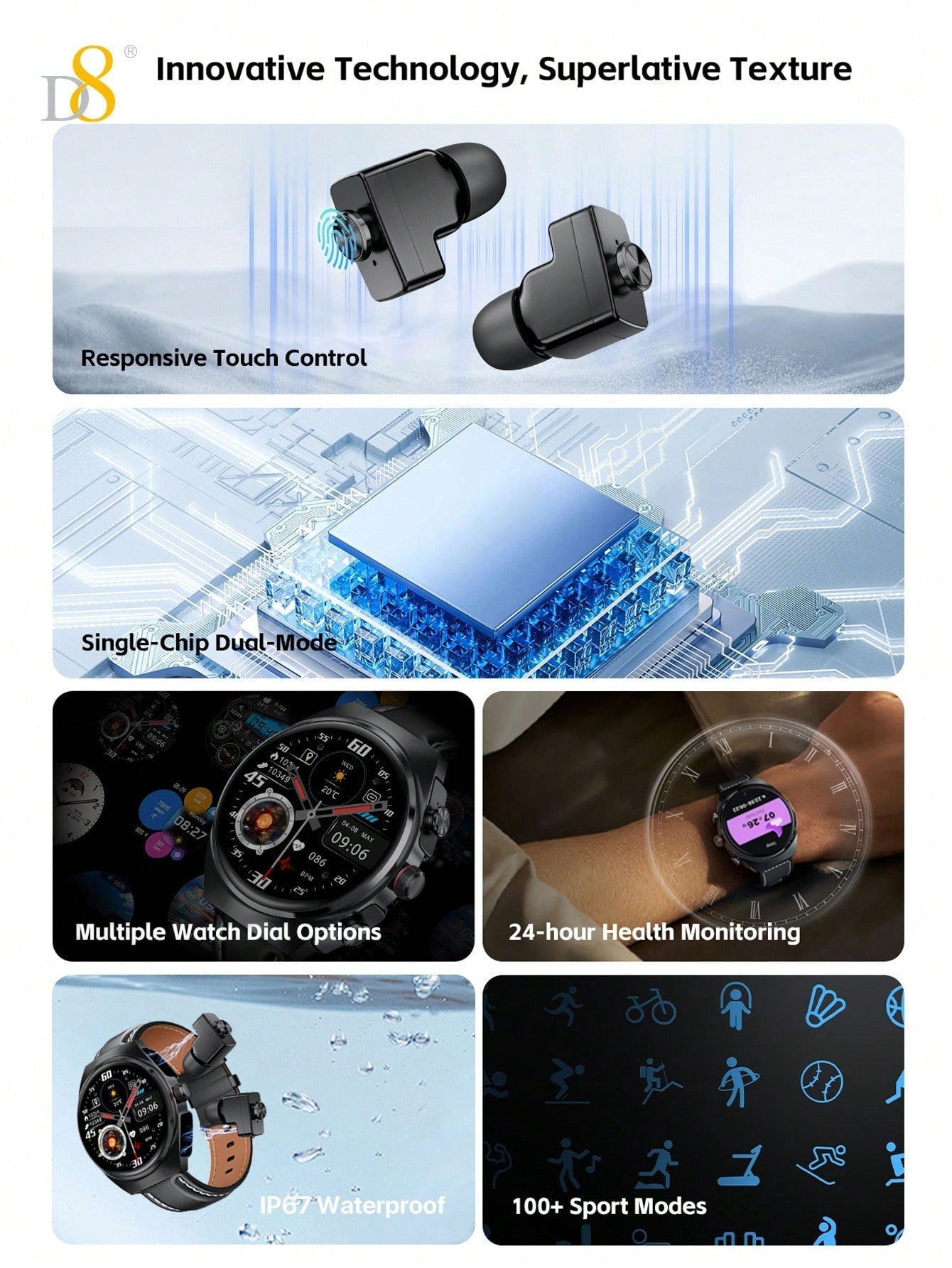 The D8 Smart Watch with Earbuds is the ultimate gadget for those who are looking for a multi-functional and stylish wearable. With a 1.53" HD touch screen, 9D sound effects, and integrated earbuds, this smartwatch seamlessly combines fitness tracking, call functionalities, and a premium audio experience. Whether you're into outdoor activities, fitness, or just staying connected on the go, this device delivers exceptional performance. Compatible with both iOS and Android devices, the D8 Smart Watch is designed for individuals who lead an active lifestyle and demand top-notch tech.