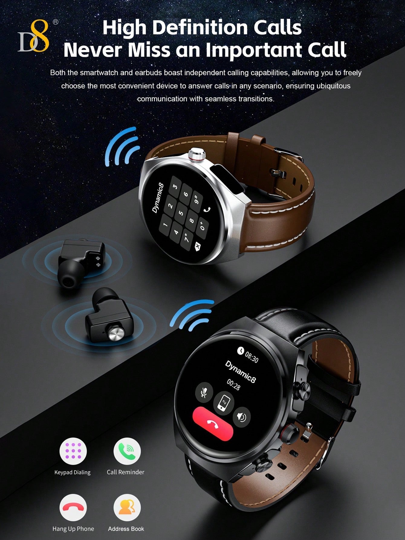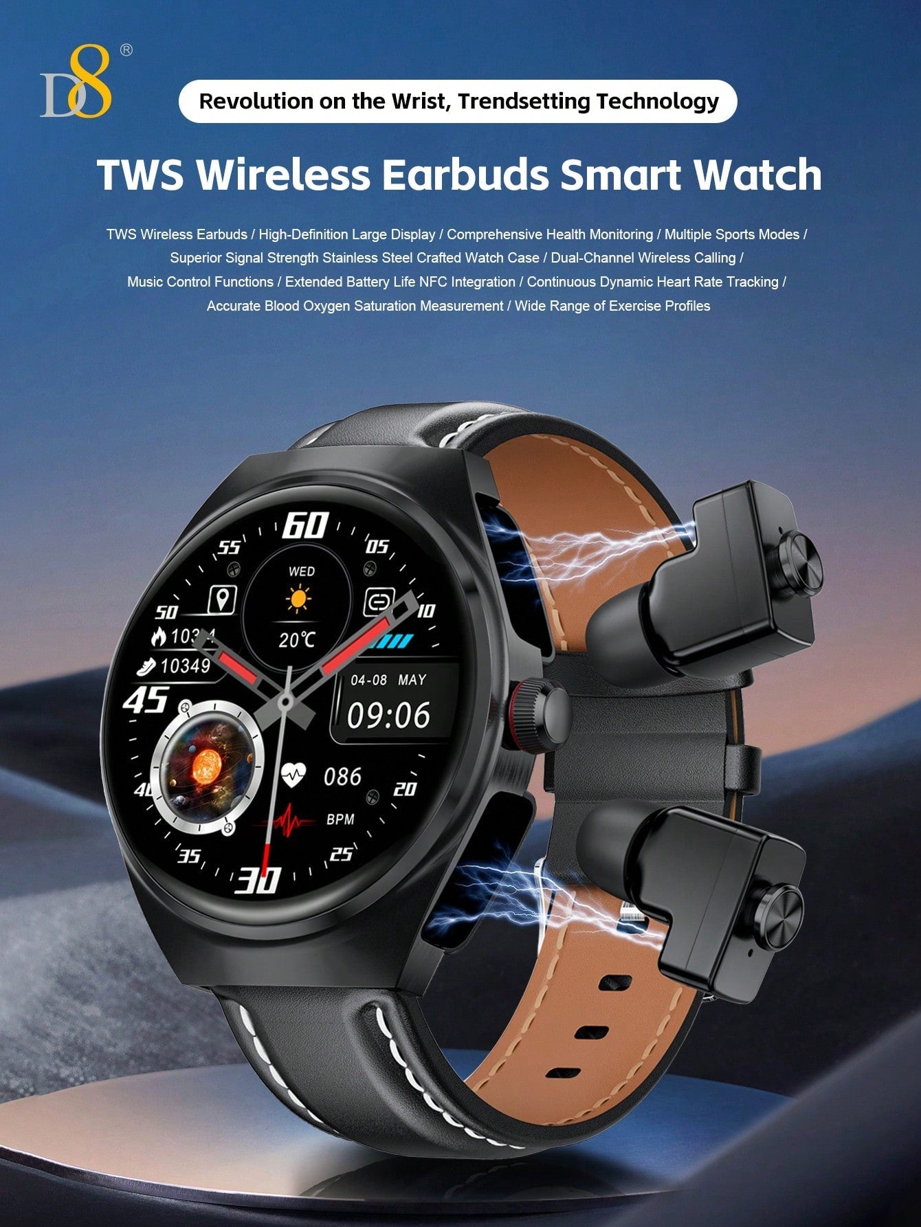 The D8 Smart Watch with Earbuds is the ultimate multifunctional wearable designed to elevate your fitness journey while keeping you connected. Whether you're jogging, hiking, or attending meetings, this 1.53" HD touchscreen smartwatch and its sleek earbuds offer seamless communication and entertainment. With advanced 9D sound effects for superior audio, fitness tracking, and the ability to answer calls directly from the watch, the D8 smartwatch is perfect for those looking for convenience and high performance in one device. Fully compatible with iOS and Android, this device supports all your needs, whether it’s fitness tracking or staying connected on the go.
