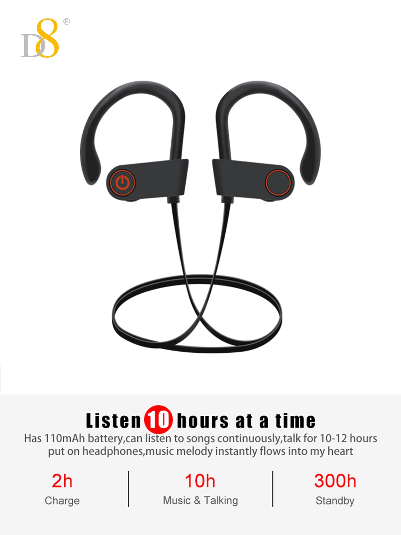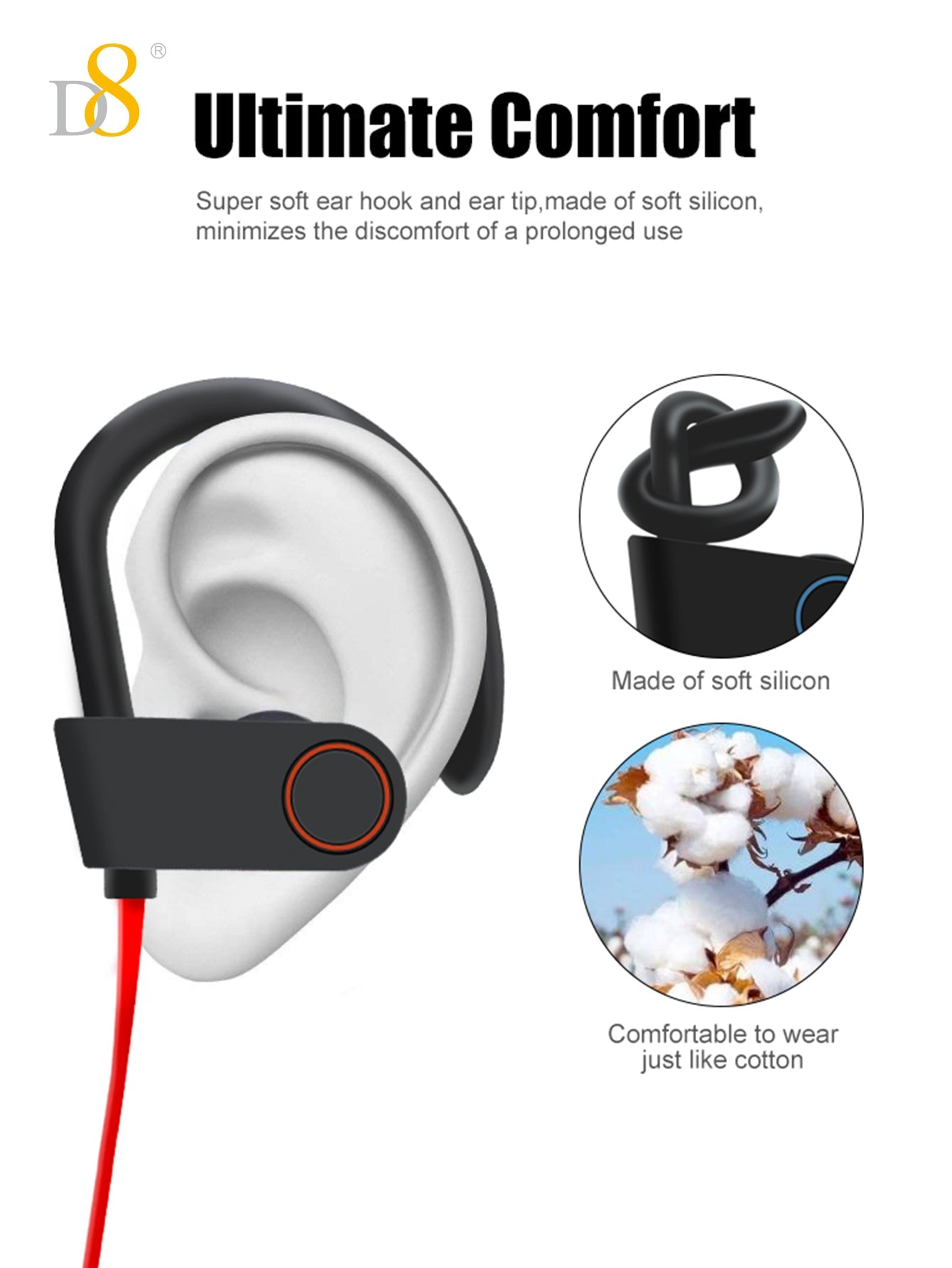 D8 Wireless Sports Earbuds, BT5.3, 10H Playtime, Deep Bass for Workouts