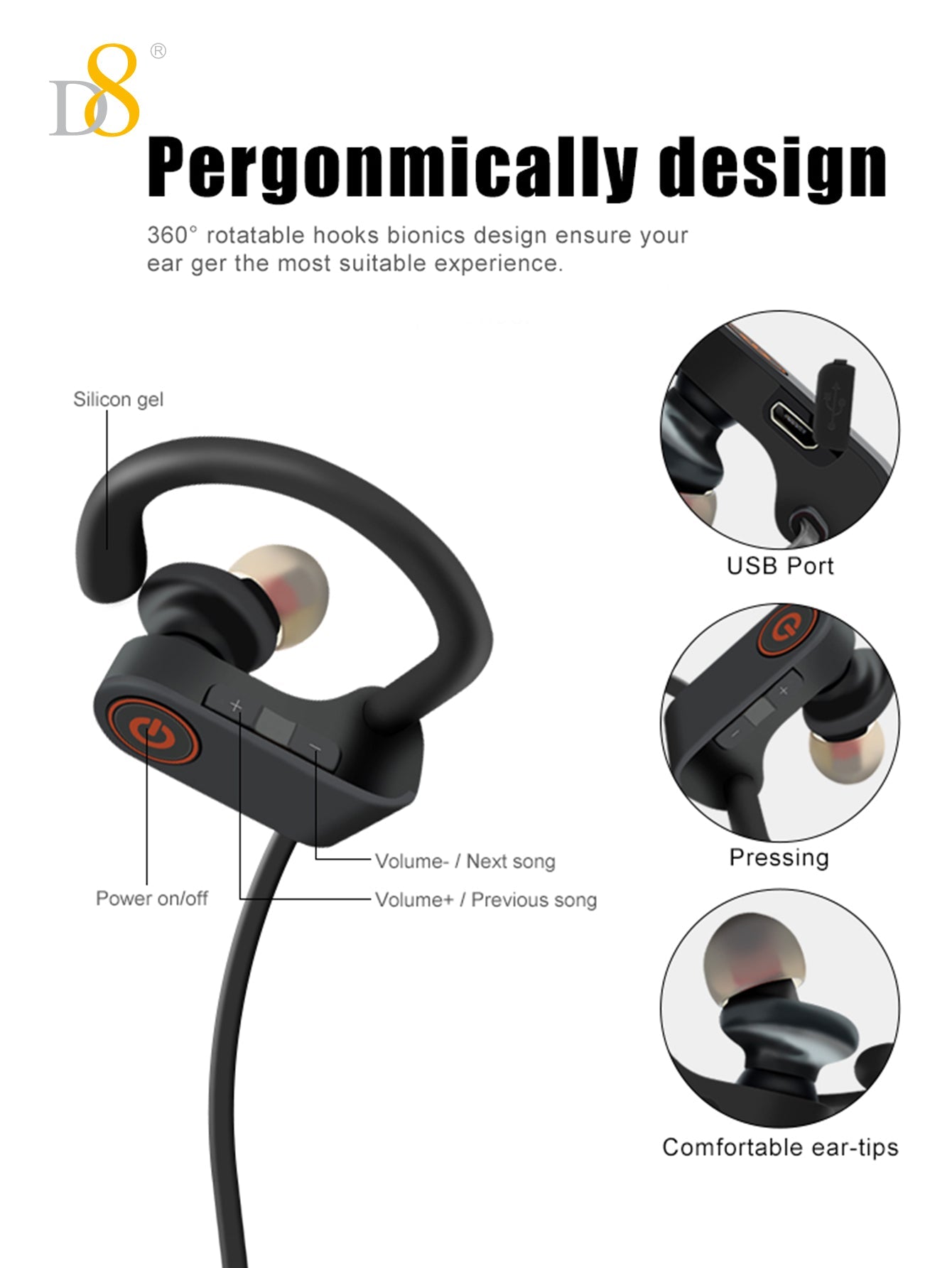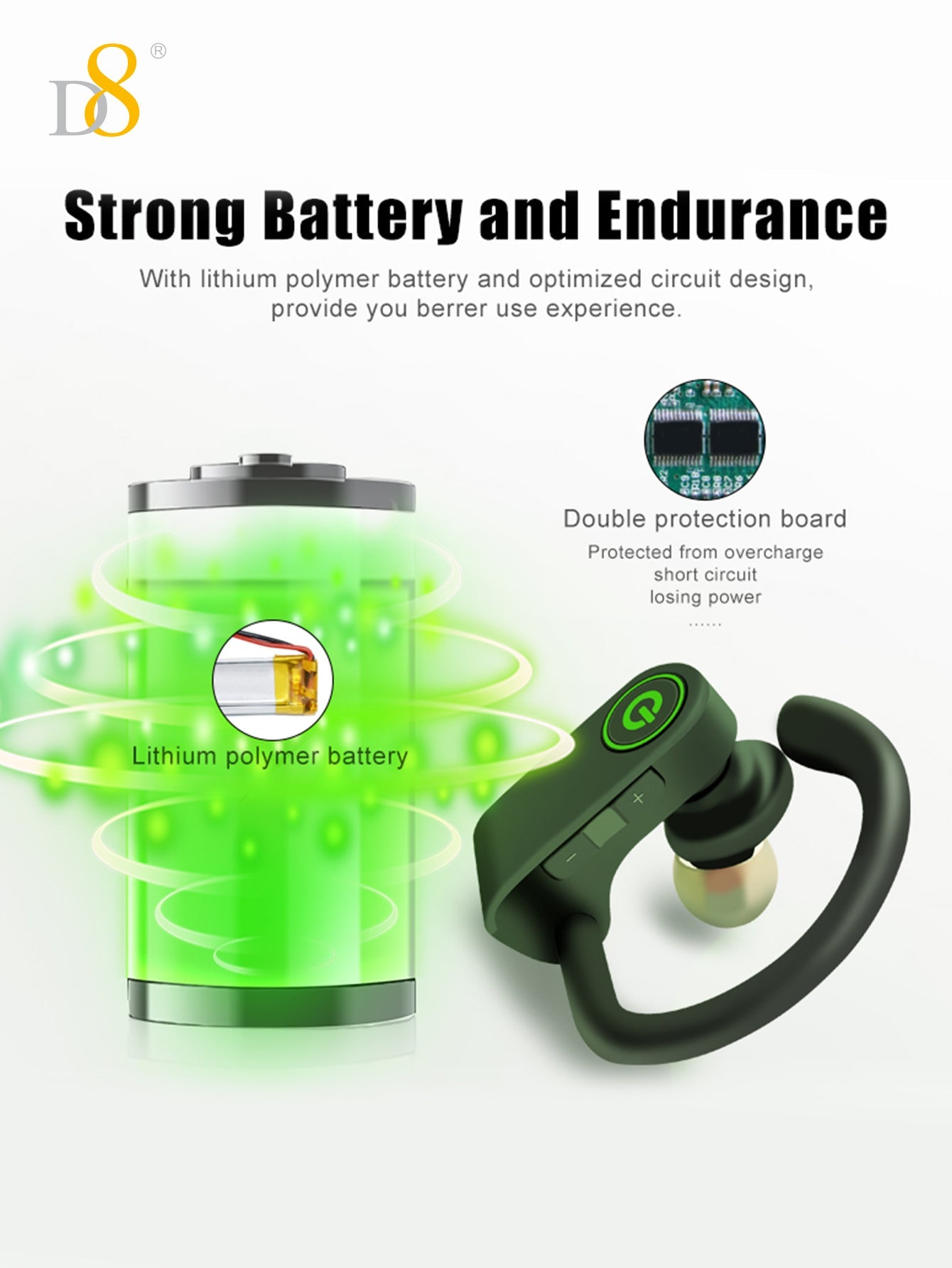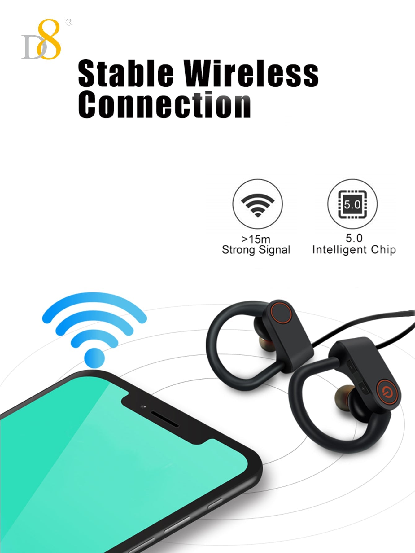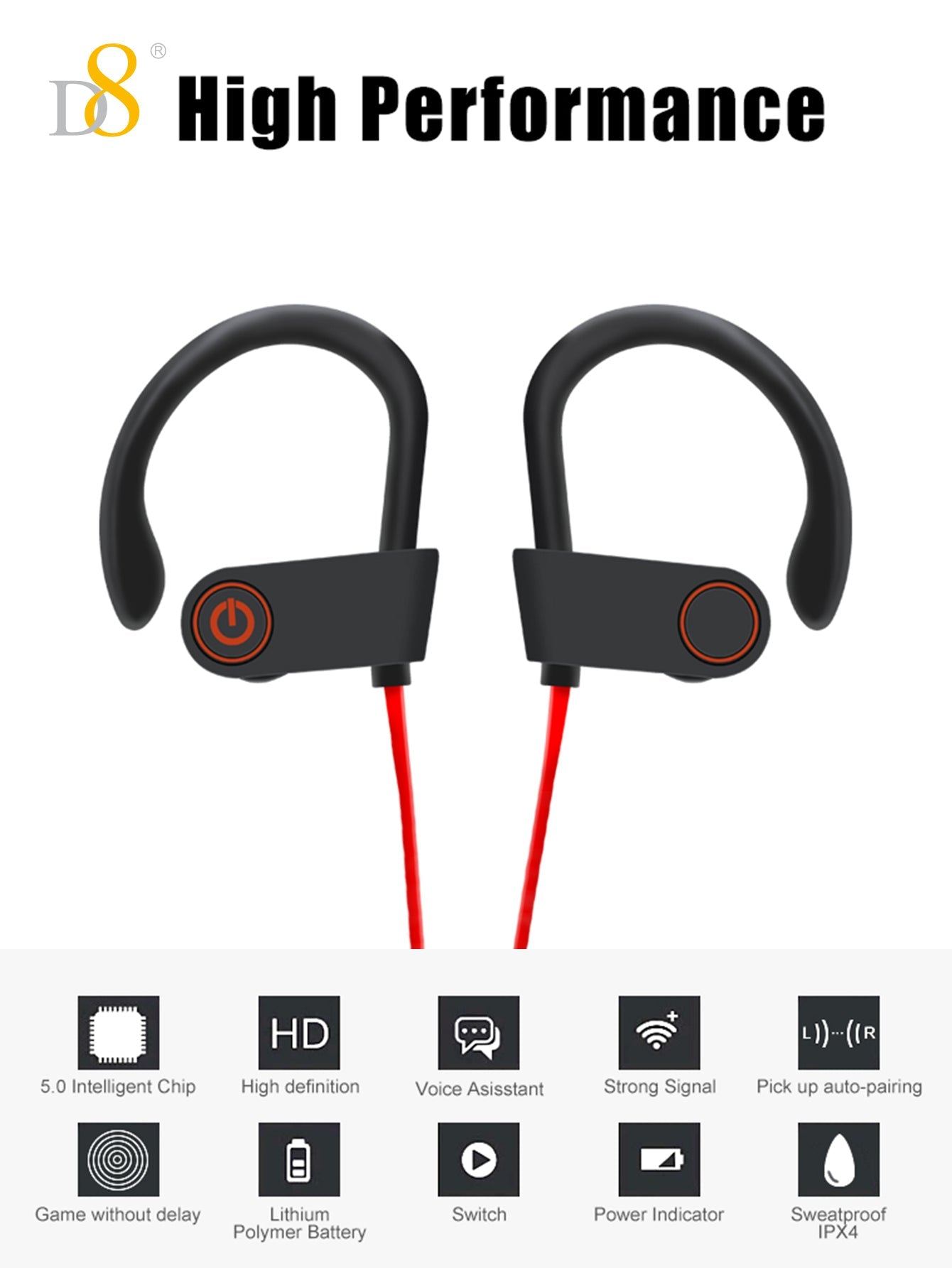 The D8 Sports Wireless Earbuds are the ultimate companion for anyone who needs high-quality sound and reliability during their workouts. With long-lasting battery life, sweat and water resistance, and HD sound, these earbuds are perfect for gym-goers, runners, and fitness enthusiasts. Upgrade your workout experience today with the D8 Sports Wireless Earbuds.