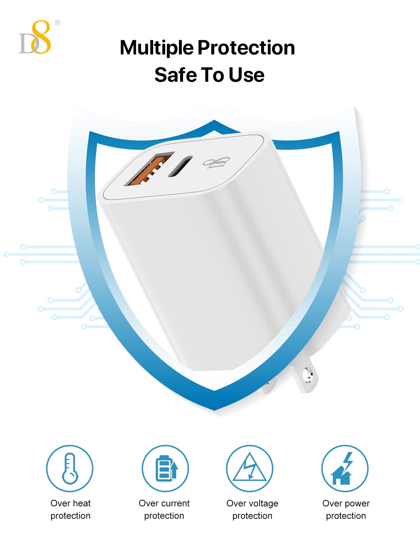 D8 TPE Type-C to Lghtning mfi Cable and 20W dual port fast charging wall charger set