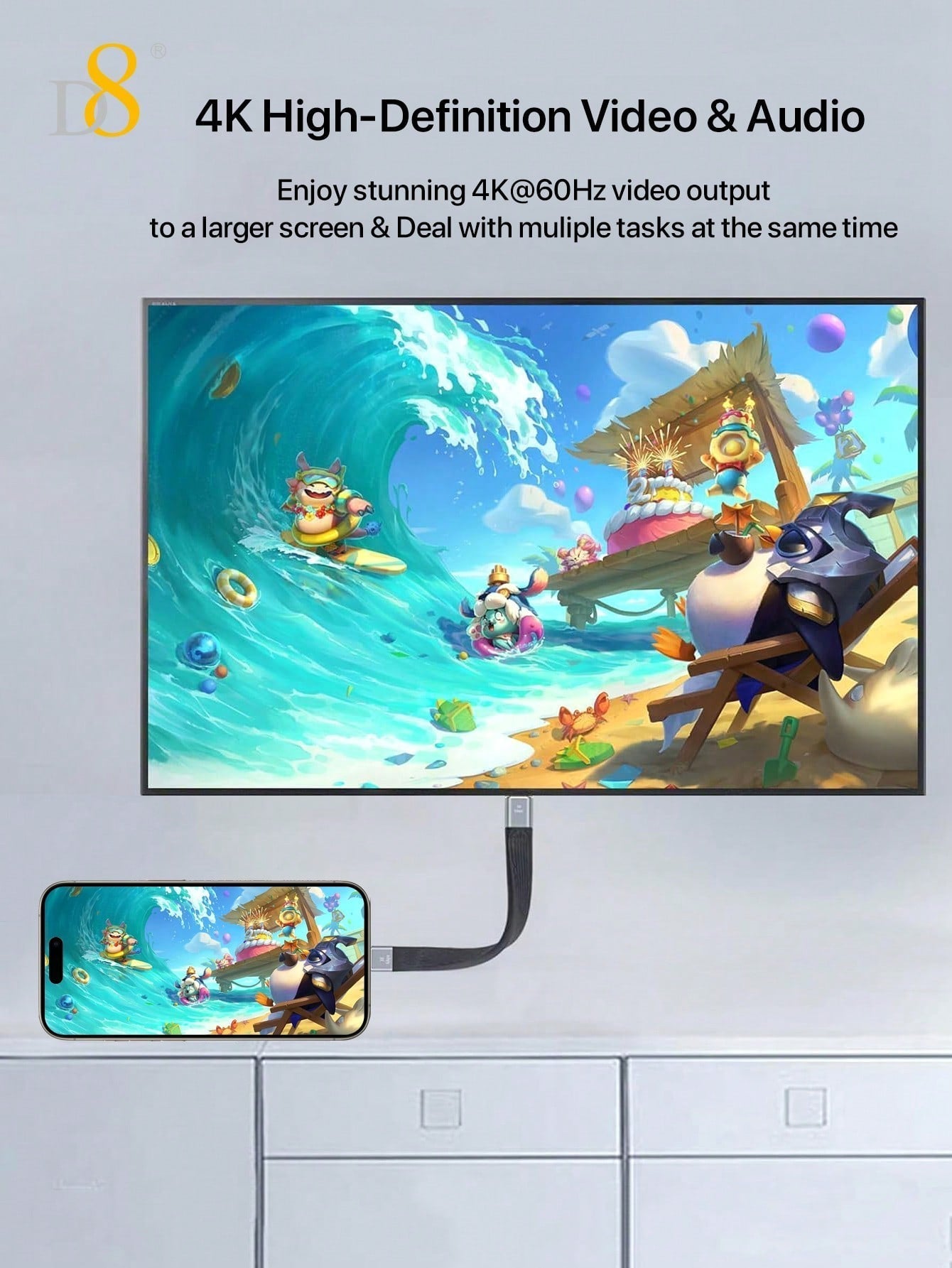 - 4K Video Output: Perfect for high-quality video streaming or presentations, this cable supports 4K video output, making it ideal for work and entertainment.
