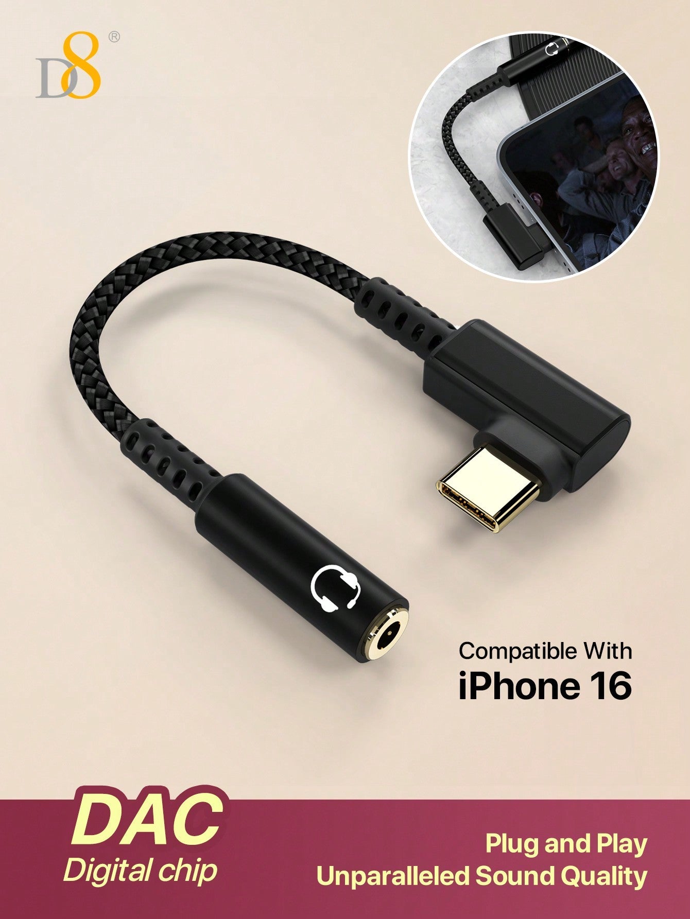 D8 USB Type C To 3.5mm Female Headphone Jack Adapter, USB C To Aux Audio Dongle Cable Cord Compatible With I Phone 16 Pro Max/15 Pro/15, S Amsung Galaxy S24/S23/S22 Ultra, IPad Pro, Pixel 9/8 Holiday Gift Valentine's Day Gift Christmas Gifts