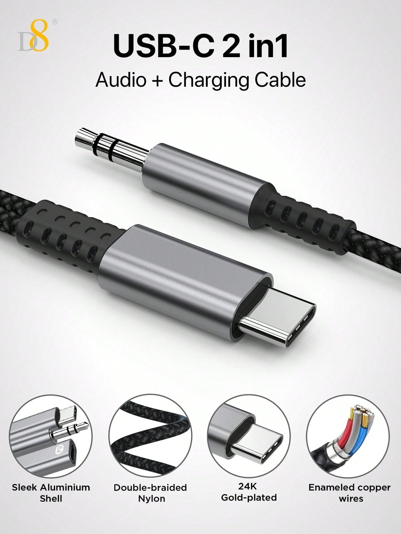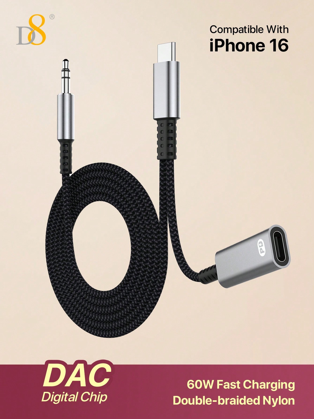 The D8 USB C to 3.5mm Aux Cable with Charger is the ideal solution for anyone who needs to charge and listen to music or take calls simultaneously. With PD 60W fast charging, uncompromised audio quality, and wide compatibility, this cable is a must-have for iPhone, Samsung Galaxy, Pixel, and other USB C device users. Enjoy the convenience of charging and listening to music without the hassle of multiple cables.
