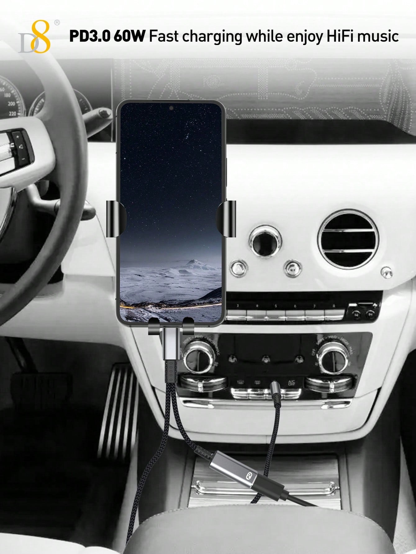 - PD 60W Fast Charging: Power Delivery (PD) 60W fast charging allows you to charge your device quickly while using the cable for audio, ensuring your device stays powered up.