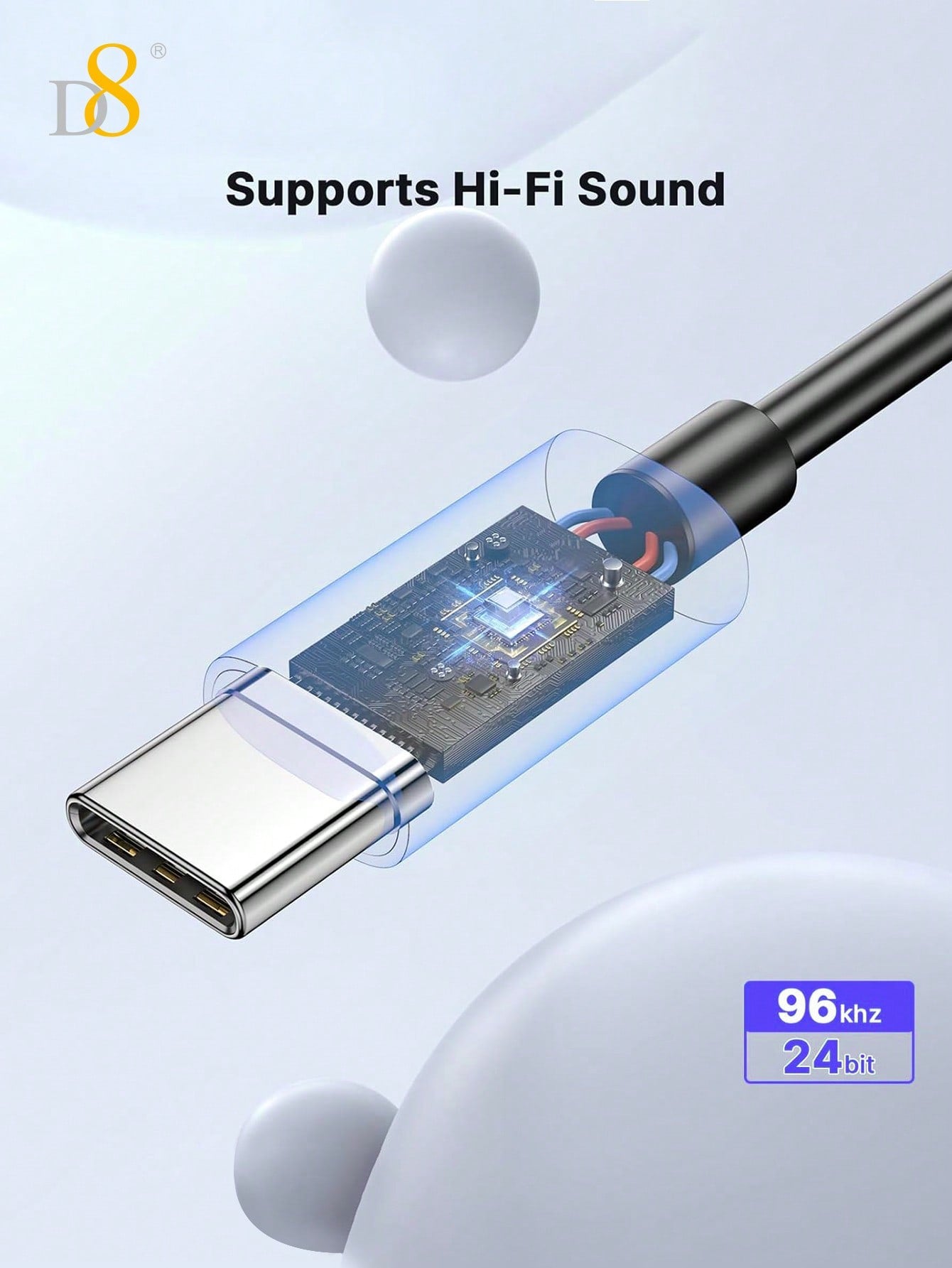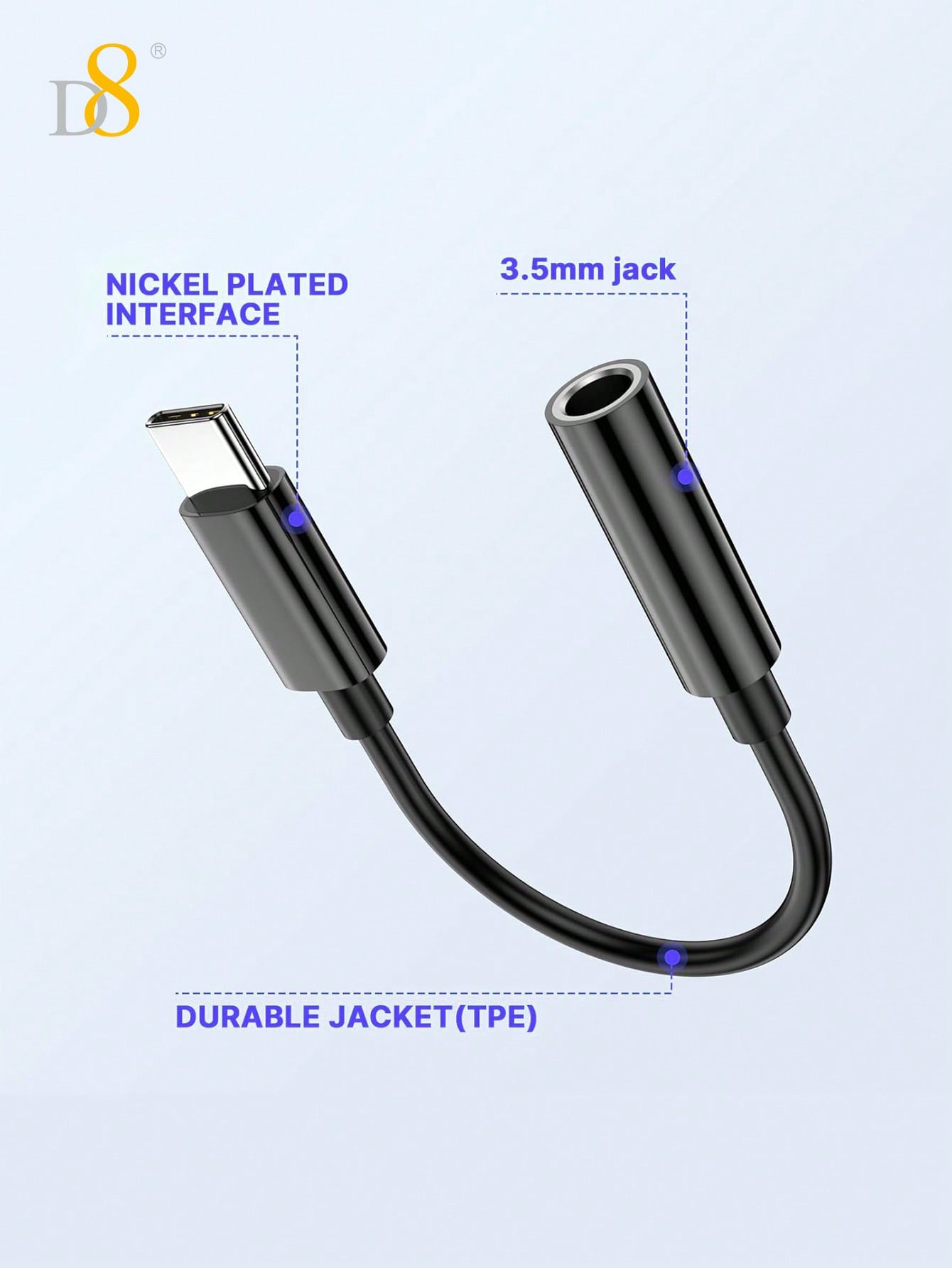 D8 USB-C to 3.5mm Adapter, Aux Dongle for iPhone 16/Galaxy/iPad/Pixel 8