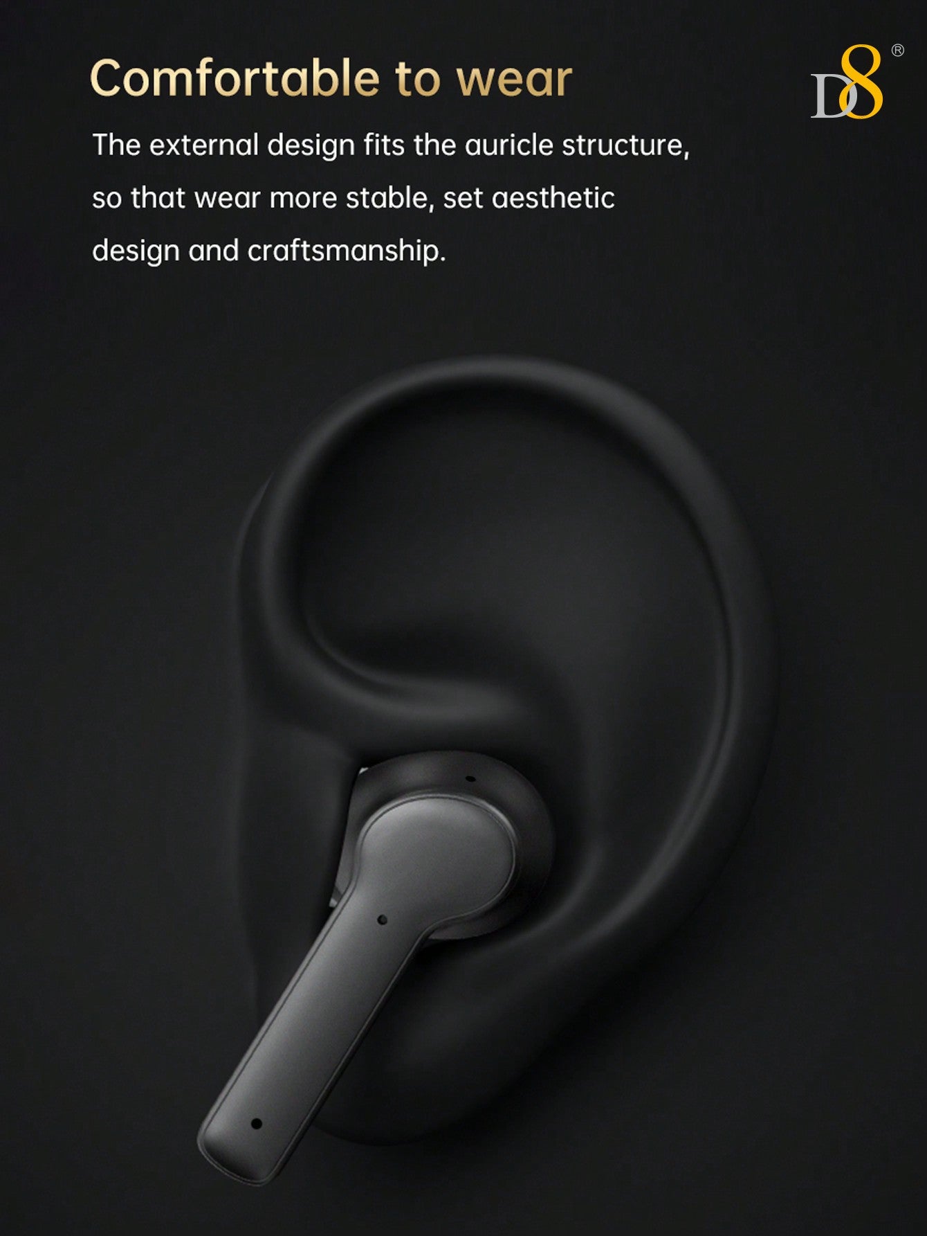 - All-Day Comfort: Lightweight and ergonomically designed, the D8 Wireless Earbuds offer long-lasting comfort, even during extended listening sessions, without causing discomfort or ear fatigue.