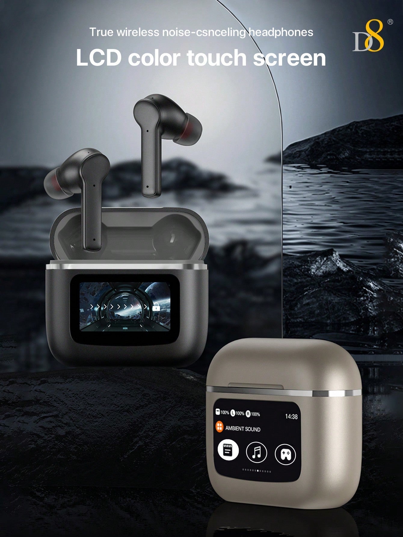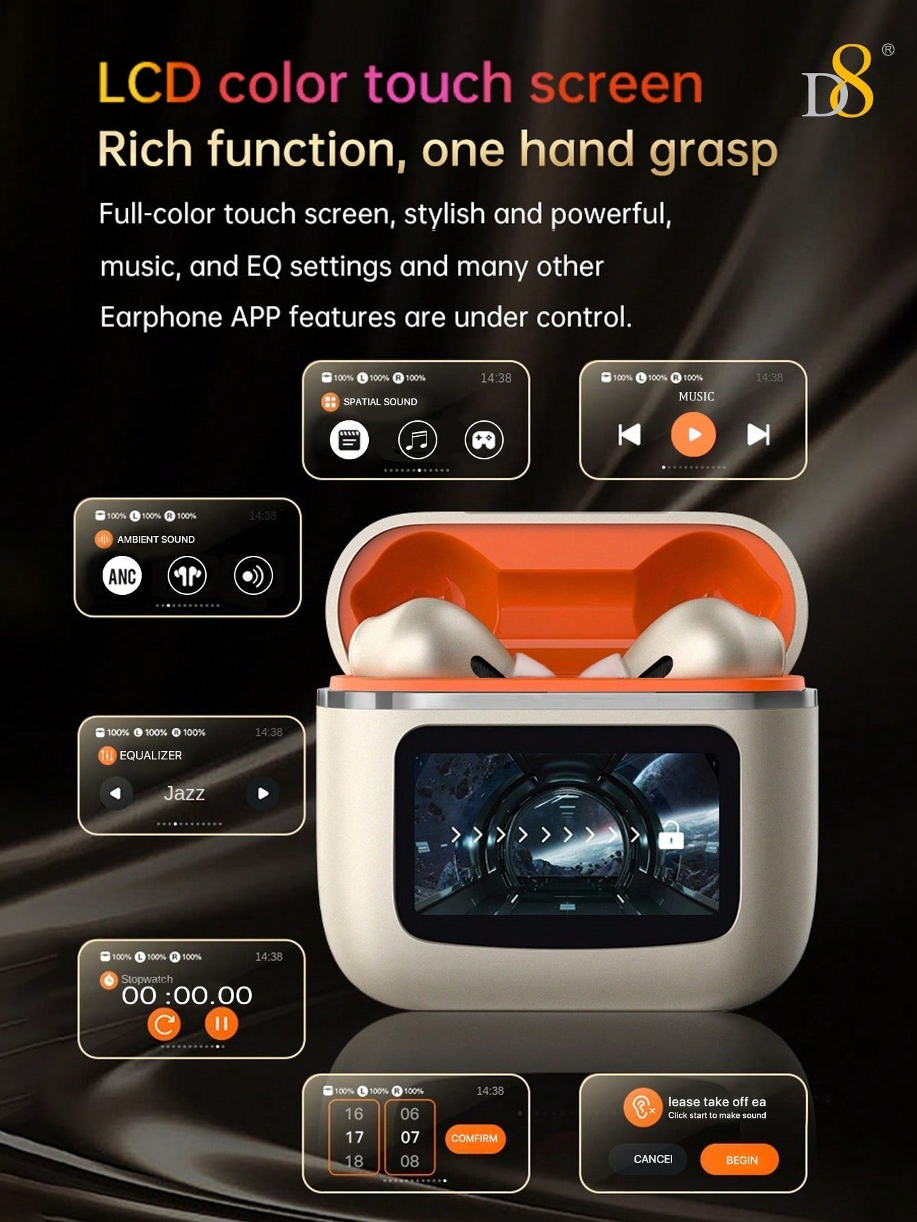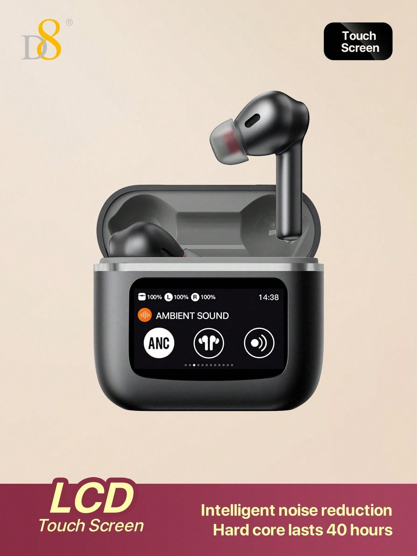 D8 Wireless Earbuds, LCD Touch, ANC & Transparency, BT 5.3, 40H Playtime