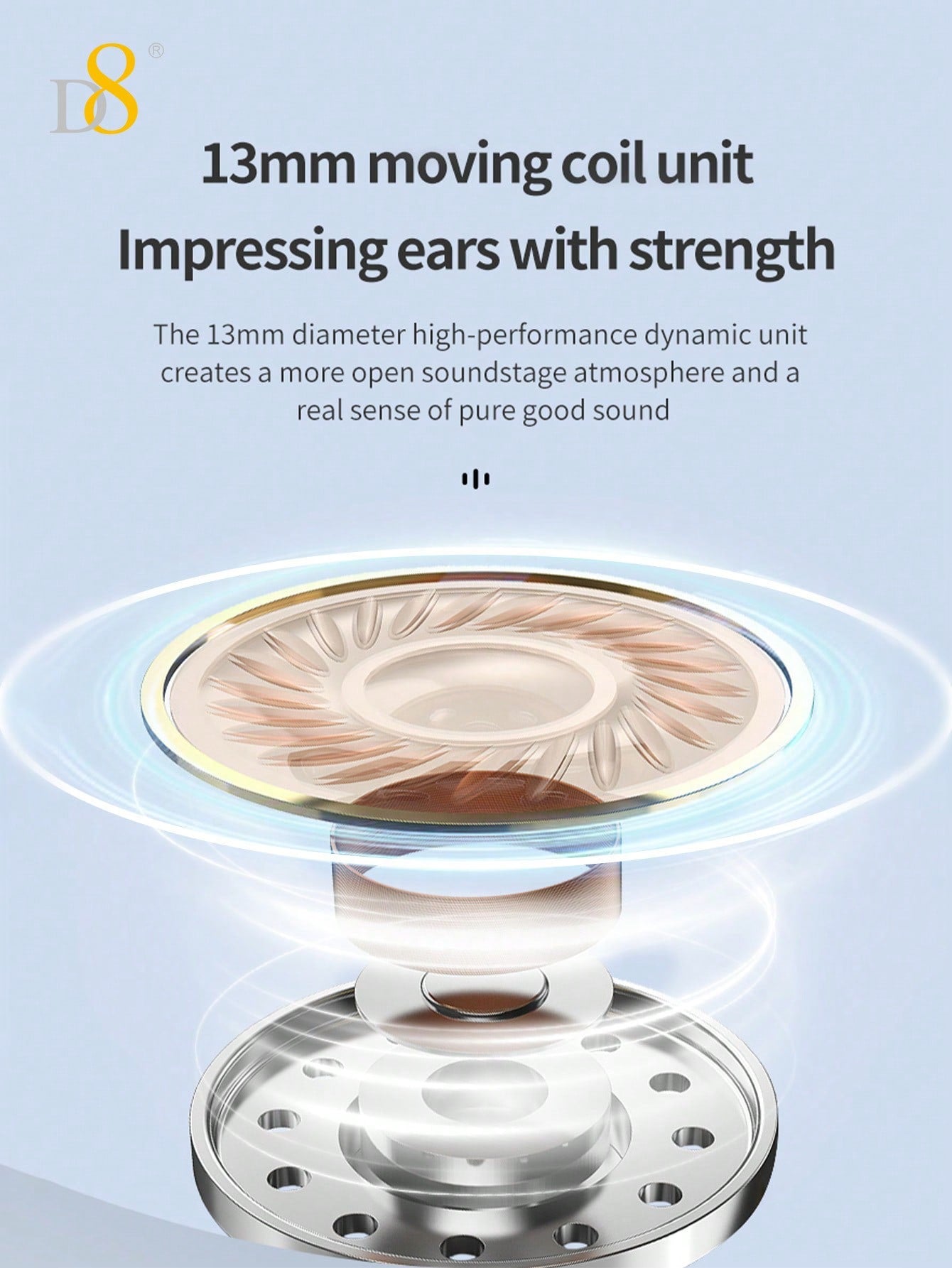 D8 Wireless Earbuds, Stereo Bass, 13mm Drivers, 4H Play, USB-C Charging