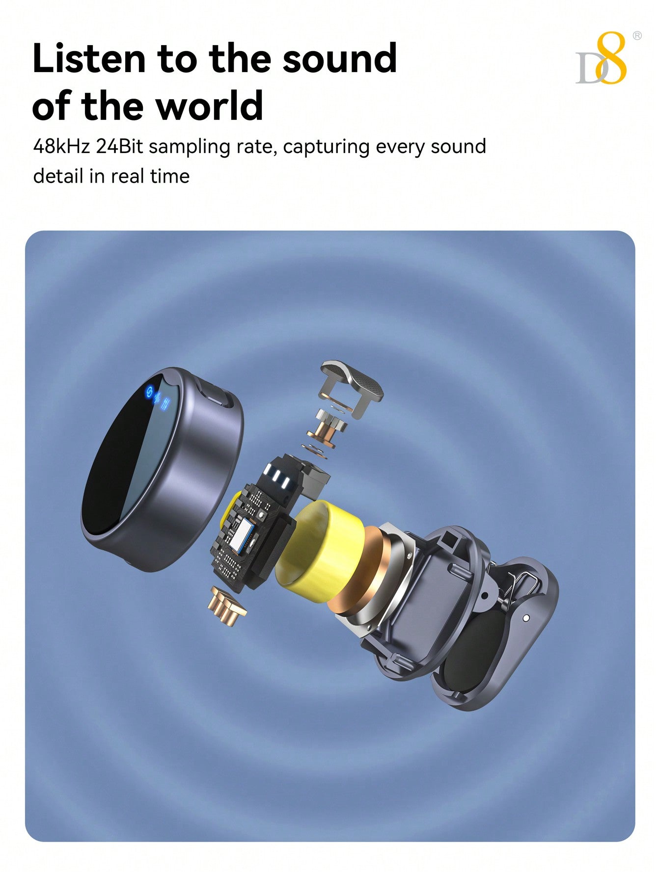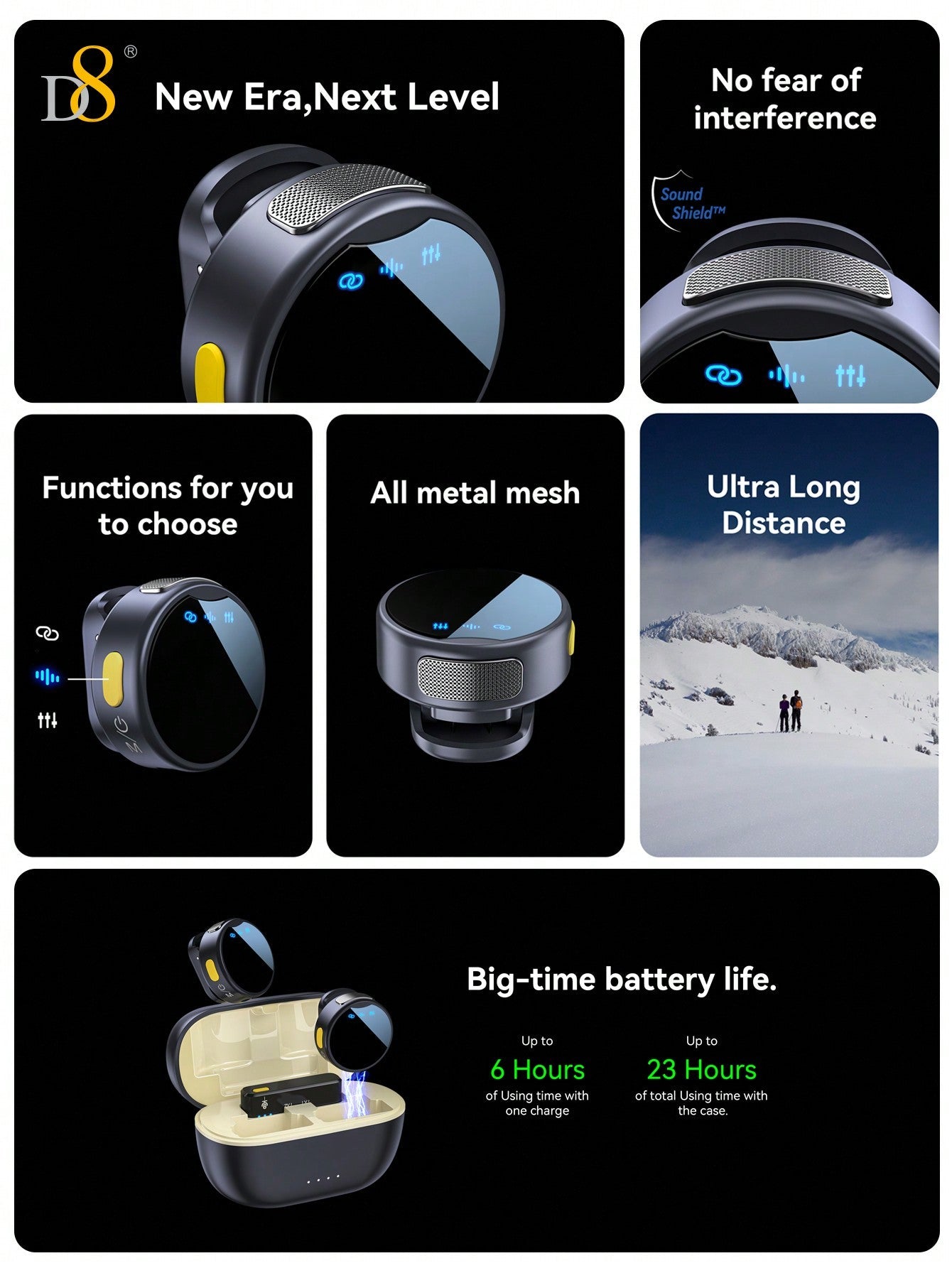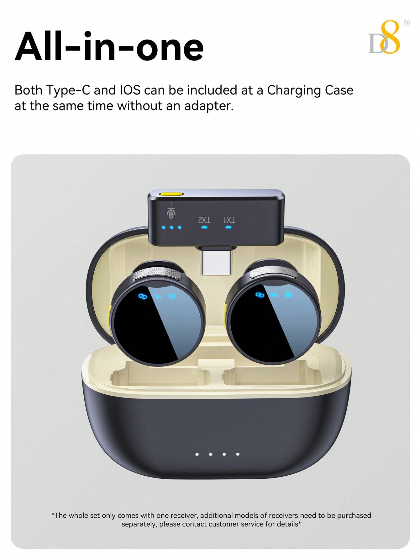 The D8 Wireless Lavalier Microphone offers the ultimate combination of portability, professional-grade sound, and long-lasting battery life. With auto-sync technology, noise reduction, and 23 hours of battery life, this mini lapel mic is perfect for content creators, professionals, and anyone looking to record high-quality audio effortlessly. Whether you're recording a podcast, conducting an interview, or streaming live, the D8 mic ensures your audio will always sound clear and professional.