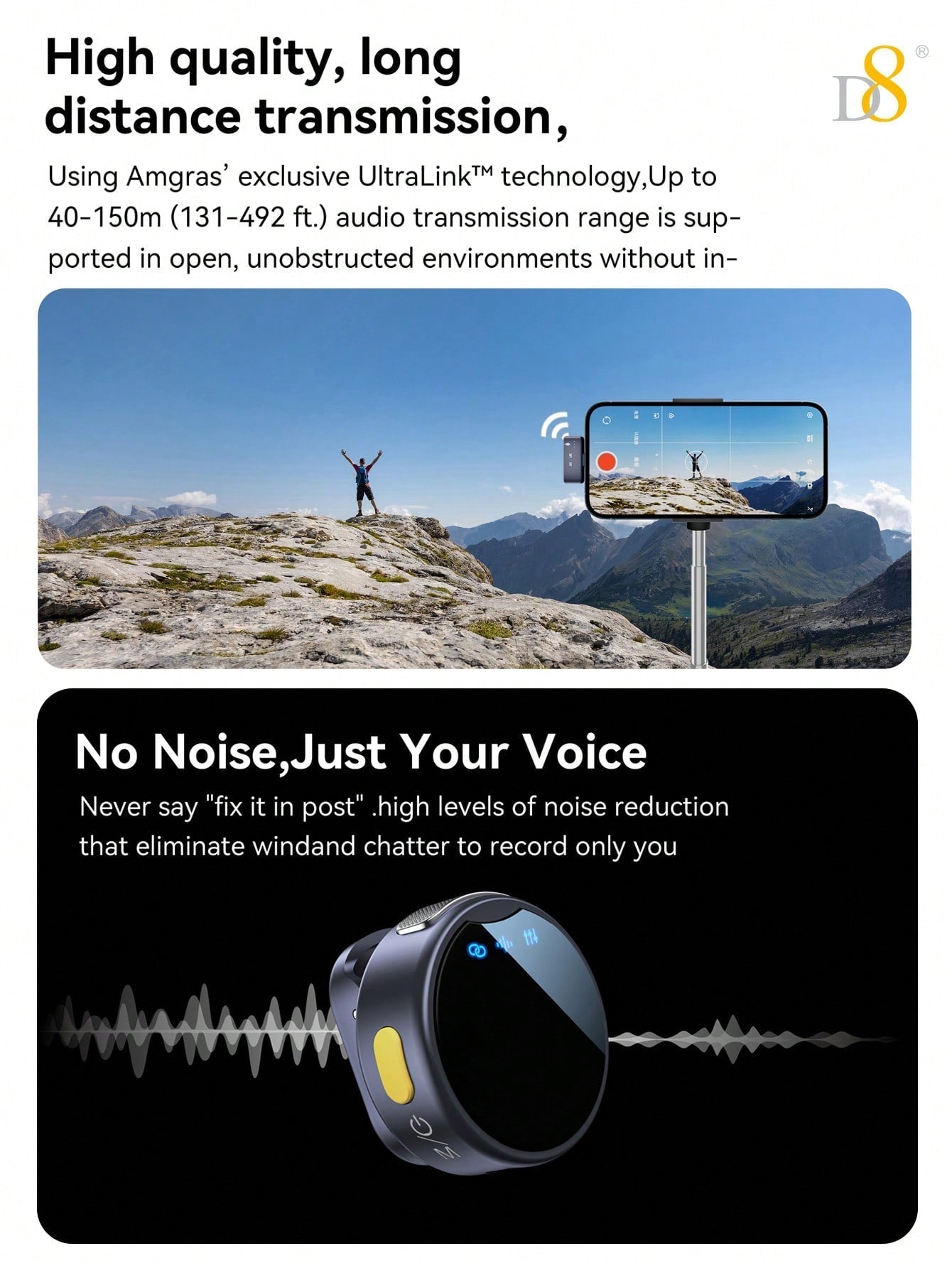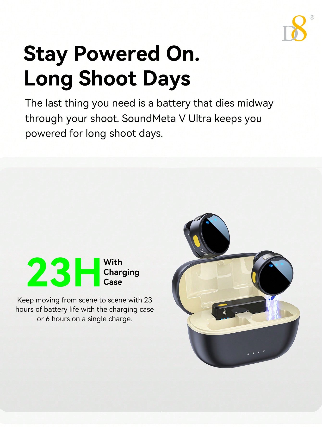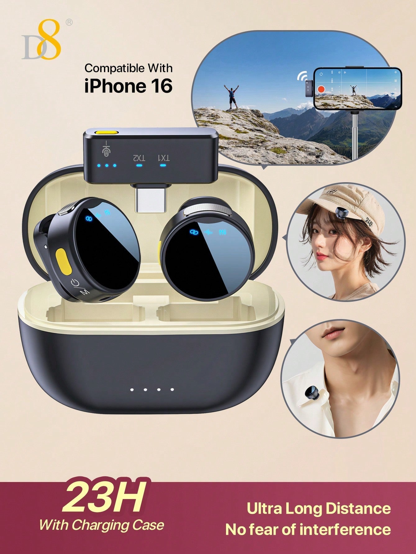 D8 Wireless Lavalier Mic, Auto Sync, Noise Reduction, 23H Battery, Pro Audio