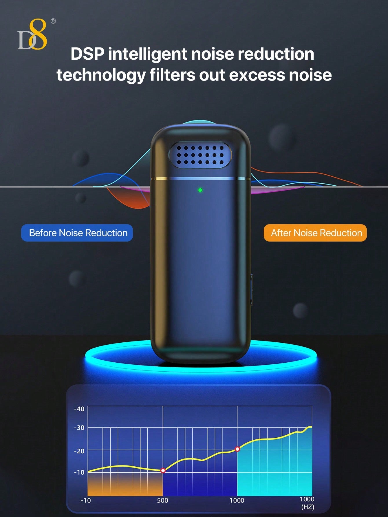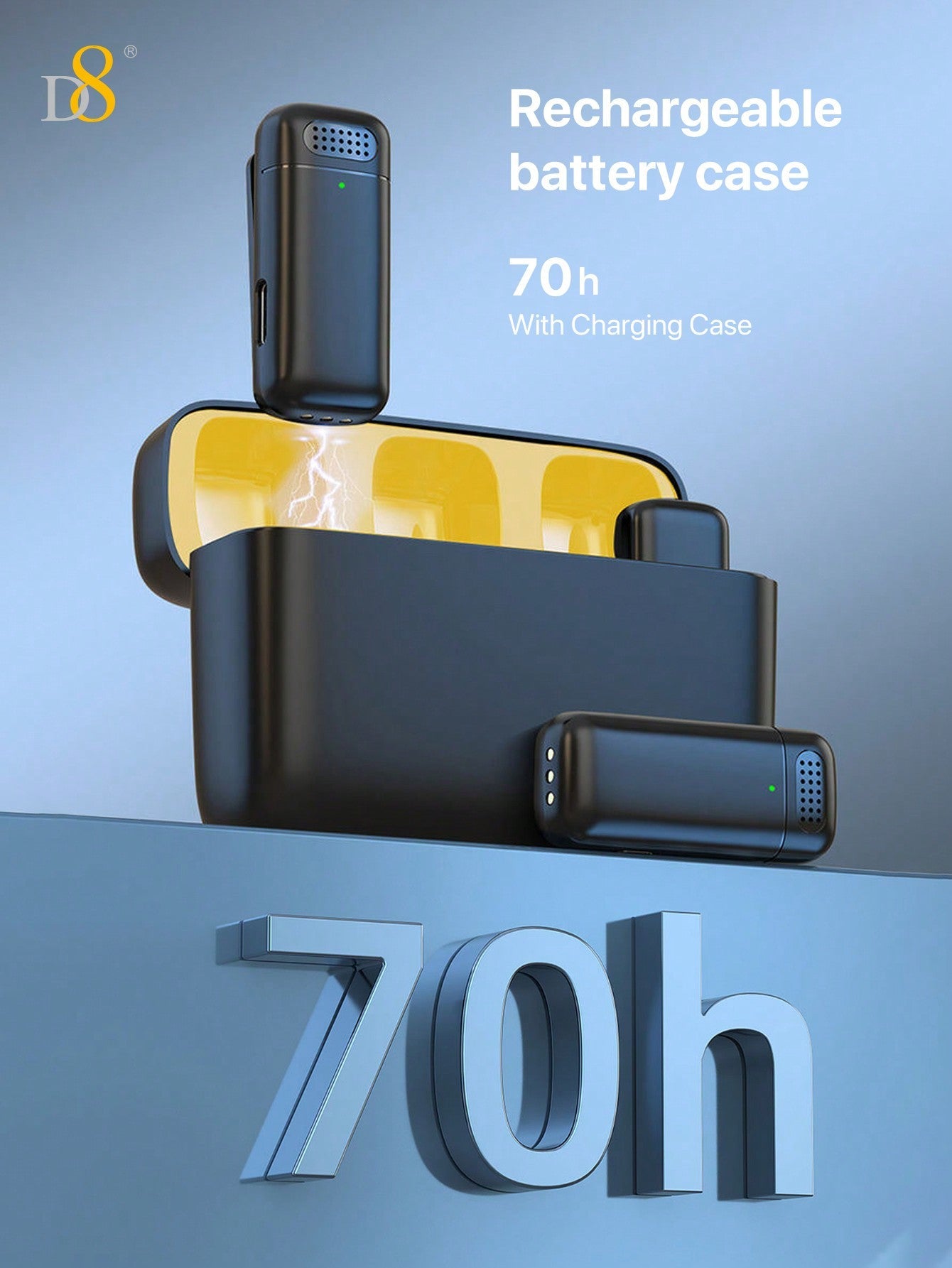 The D8 Professional Wireless Lavalier Microphone is a game-changer for content creators and professionals who need high-quality, long-lasting audio solutions. With its USB-C compatibility, 70-hour battery life, noise cancellation, and compact charging case, this microphone is perfect for anyone looking to elevate their recording quality with a hassle-free, wireless experience.
