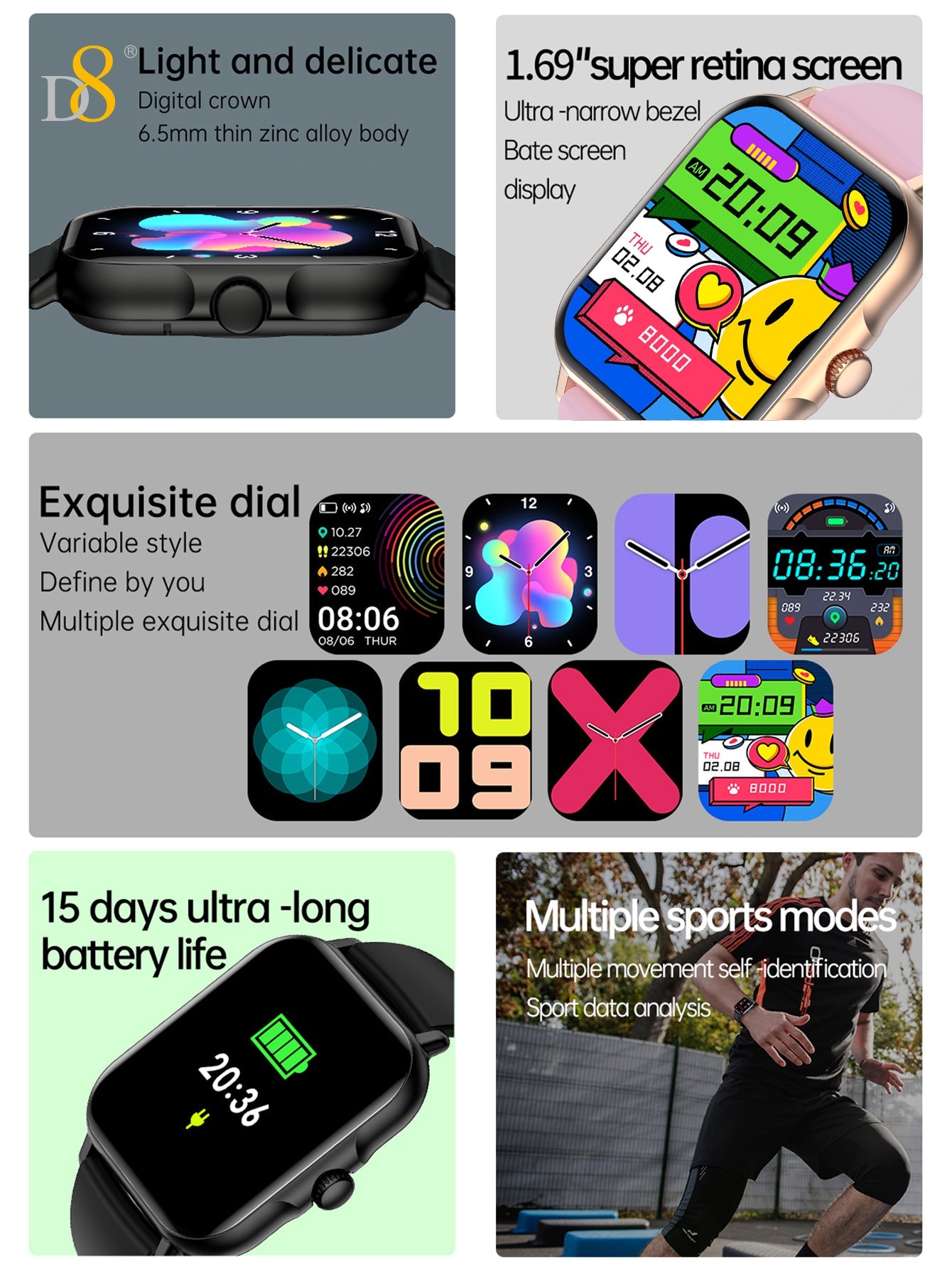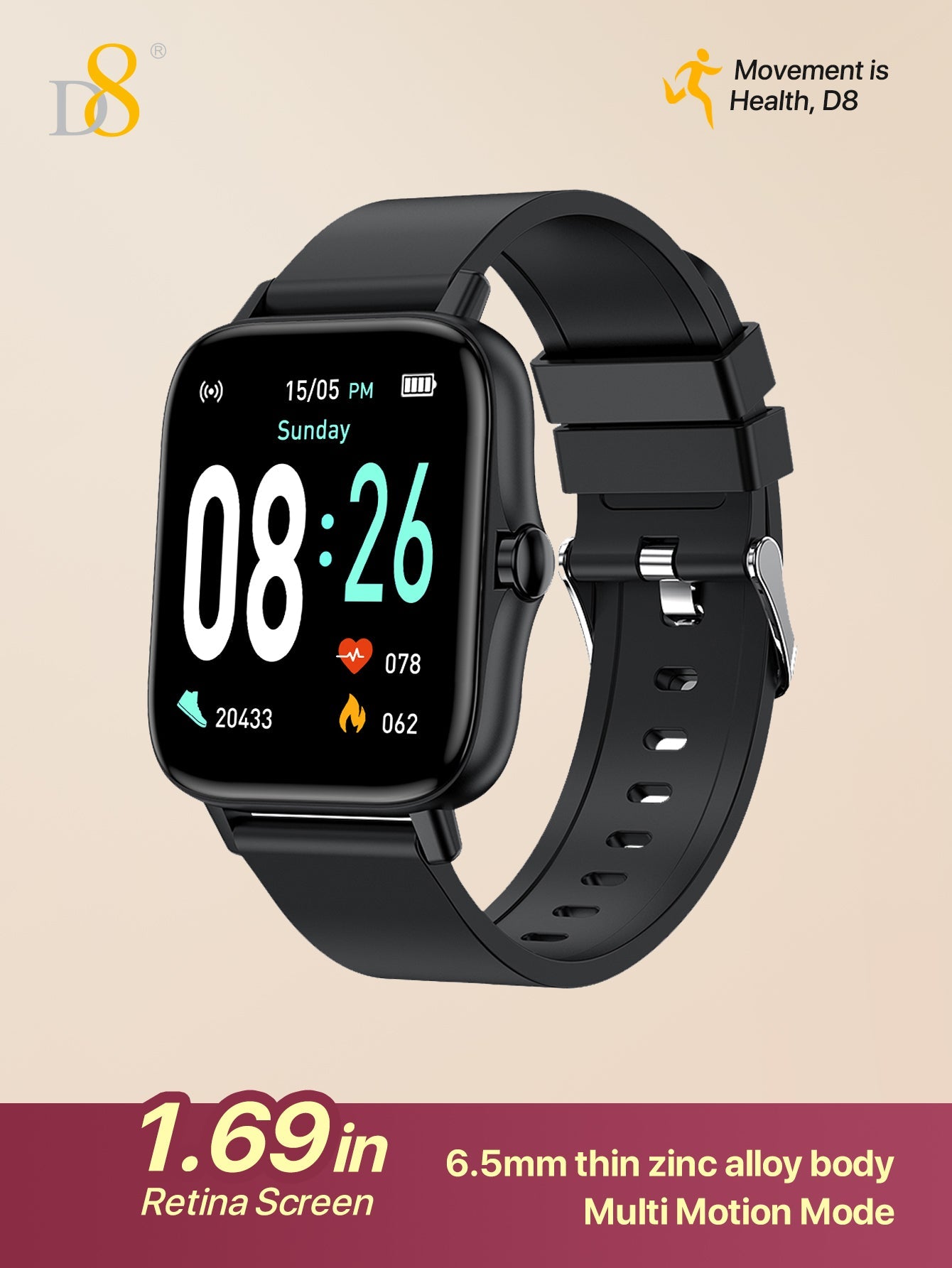 - Seamless Integration: Pair the D8UP3 with your smartphone to receive notifications, control music, and more directly from your wrist.