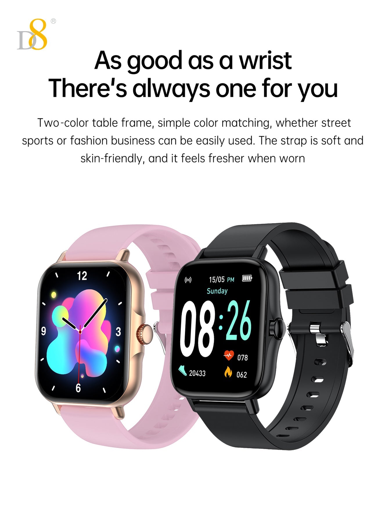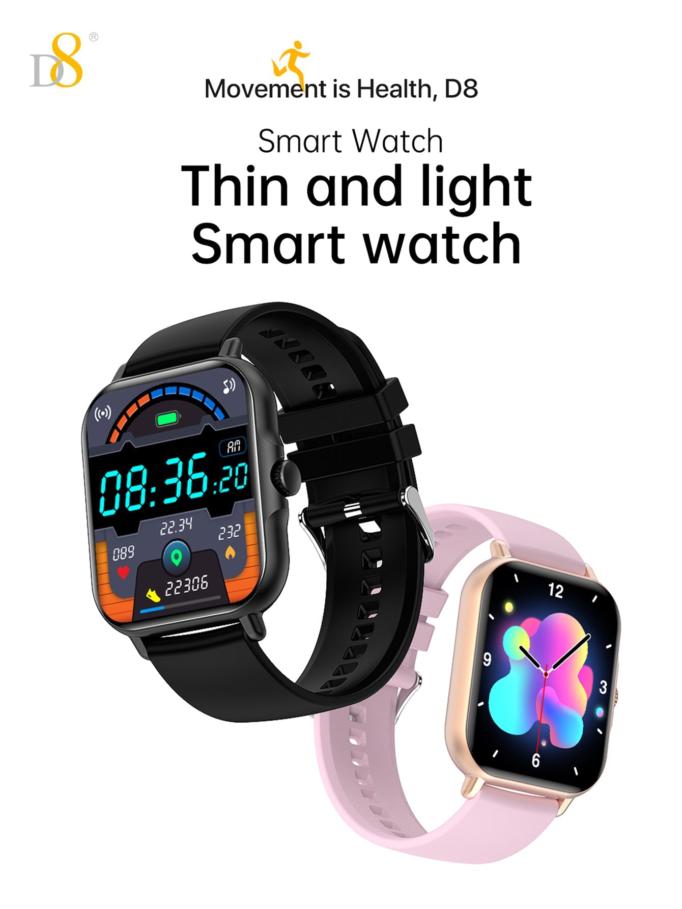 The D8UP3 Smart Watch is an all-in-one fitness and health tracker that combines modern technology with style and convenience. With its sleek design and powerful features, this smartwatch helps you stay connected, monitor your health, and track your sports activities seamlessly. Whether you’re a fitness enthusiast, a busy professional, or someone who values health monitoring, the D8UP3 Smart Watch offers everything you need on your wrist. It is compatible with both iOS and Android devices, ensuring that you can sync your data and notifications effortlessly.