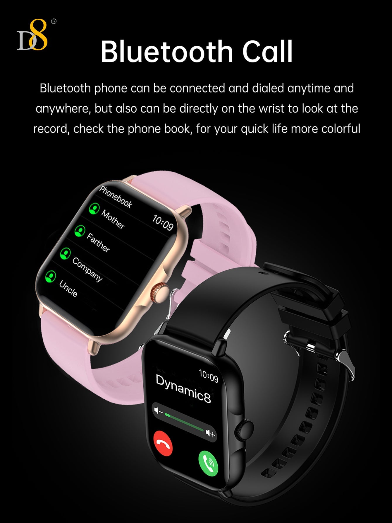 - Call Functionality: Answer and make calls directly from your wrist, ideal for busy individuals or those who prefer hands-free communication while on the move.