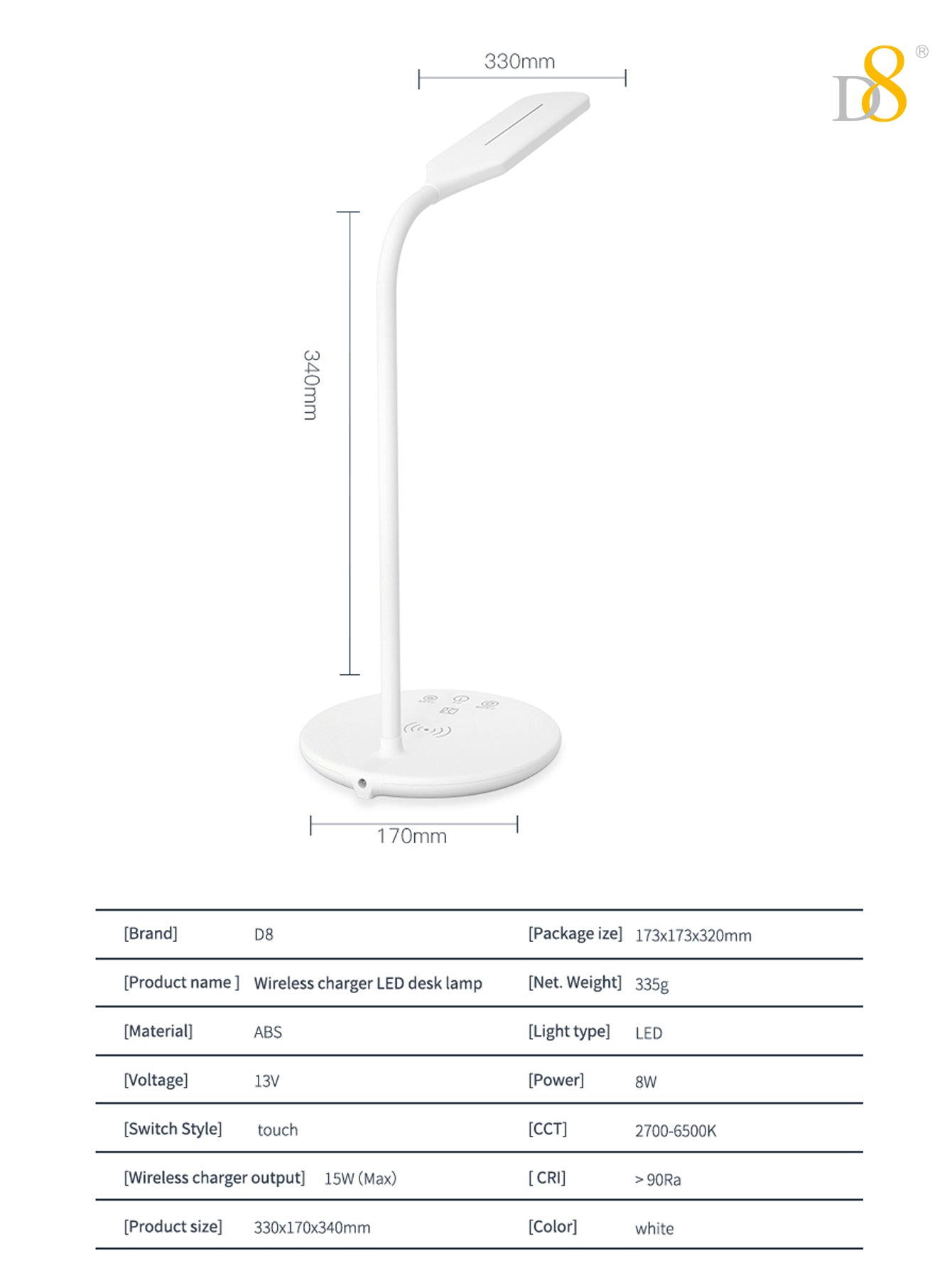 Conclusion: Upgrade your workspace or living area with the Dynamic8 Wireless Charging LED Desk Lamp, designed to meet modern-day demands for both illumination and device charging. Experience the convenience of integrated wireless technology and versatile lighting options. Order now to enhance your productivity and lifestyle!