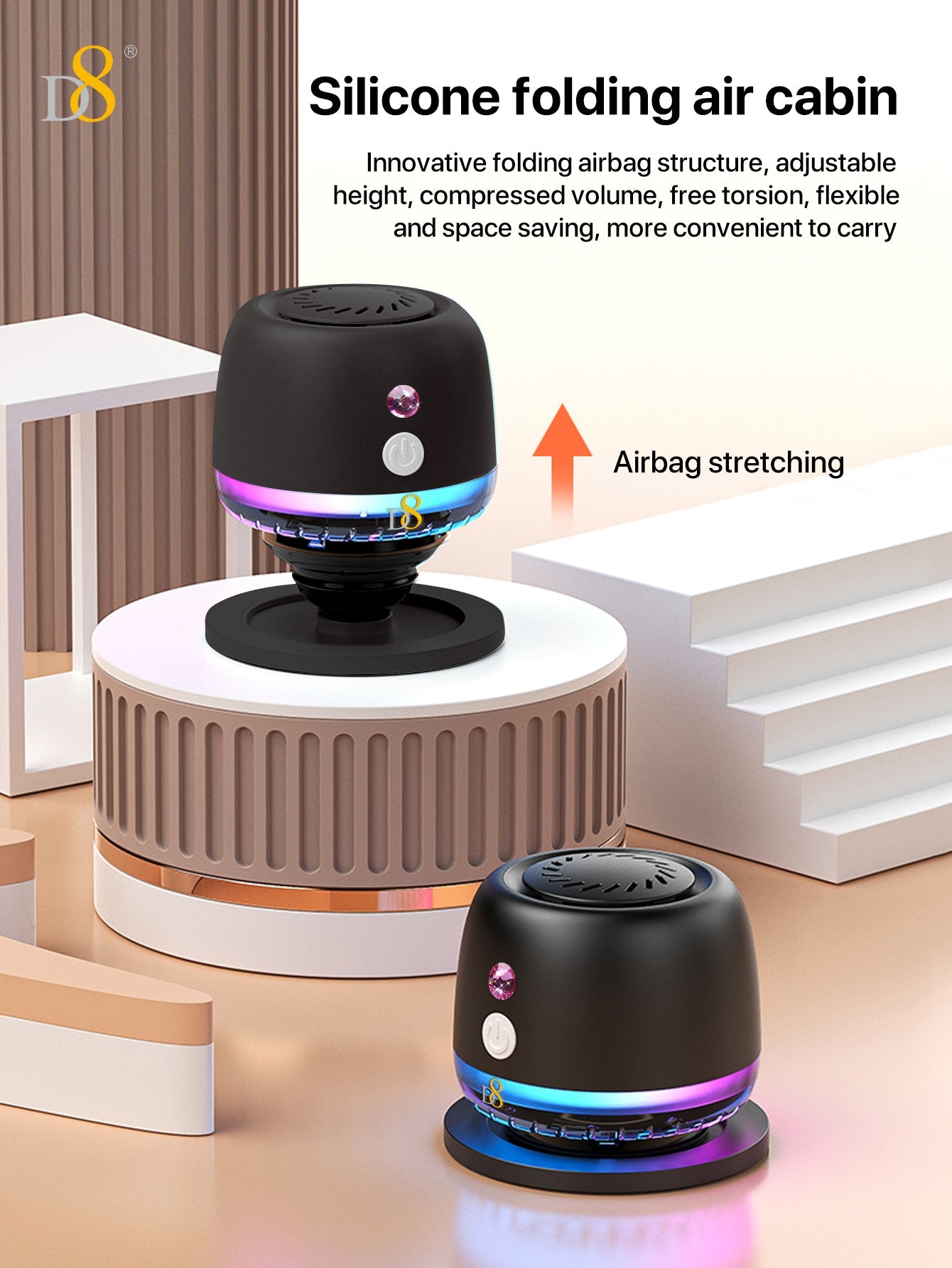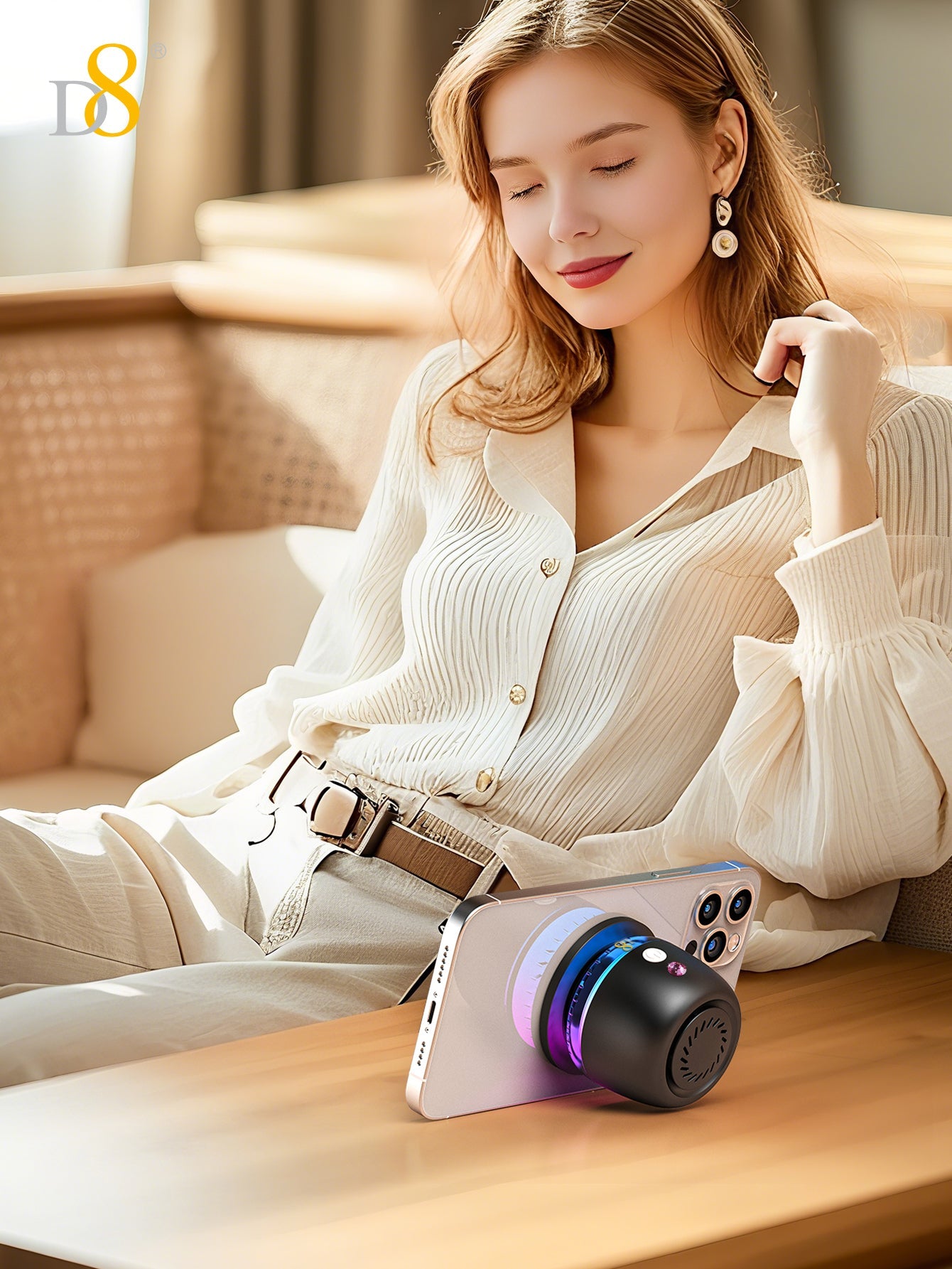 Meet the D8 Wireless Magnetic Bluetooth Speaker, a revolutionary portable audio companion that blends innovation with style. Featuring a foldable silicone air cabin for adjustable height and space-saving portability, this mini speaker packs a punch with 5W bass-rich sound, vibrant RGB lighting, and magnetic accessories. Perfect for travel, home decor, or gifting, it’s designed to elevate your audio experience anywhere.