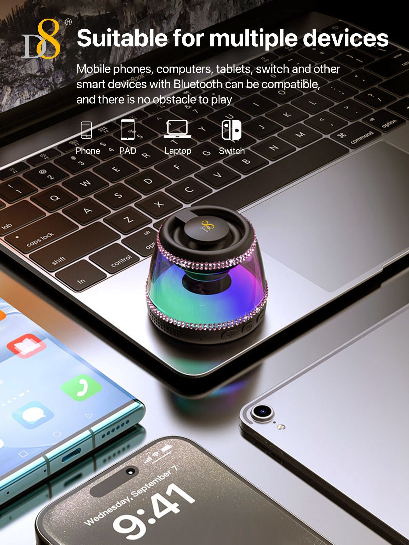 Meet the D8 Wireless Magnetic Bluetooth Speaker, a revolutionary portable audio companion that blends innovation with style. Featuring a foldable silicone air cabin for adjustable height and space-saving portability, this mini speaker packs a punch with 5W bass-rich sound, vibrant RGB lighting, and magnetic accessories. Perfect for travel, home decor, or gifting, it’s designed to elevate your audio experience anywhere.
