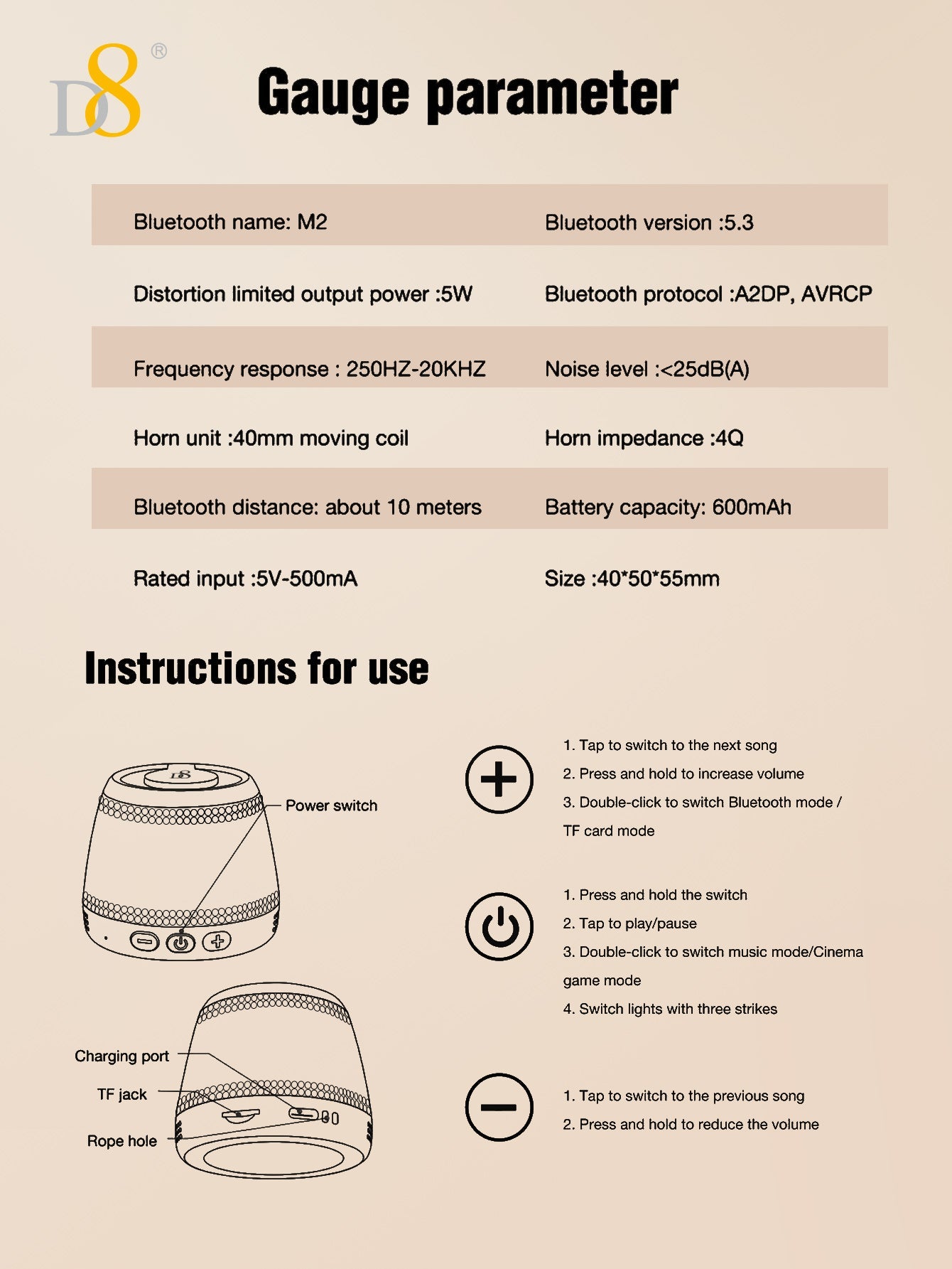 5W Bass Diaphragm & Internal Magnet: Deep, immersive sound with crisp clarity for its size.